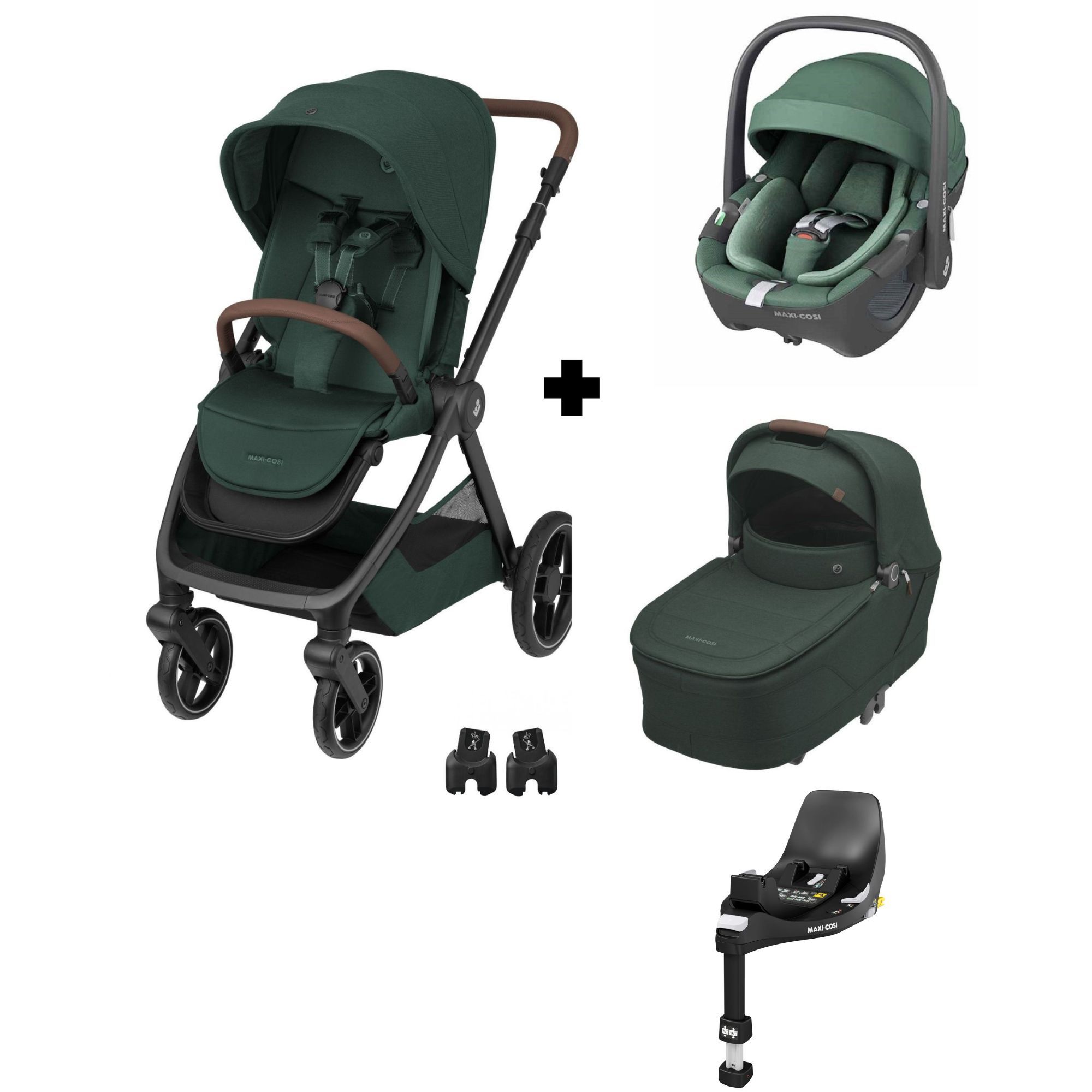 Poussette trio Oxford + siège auto Pebble 360 + nacelle Sense Twillic Green + base FamilyFix 360