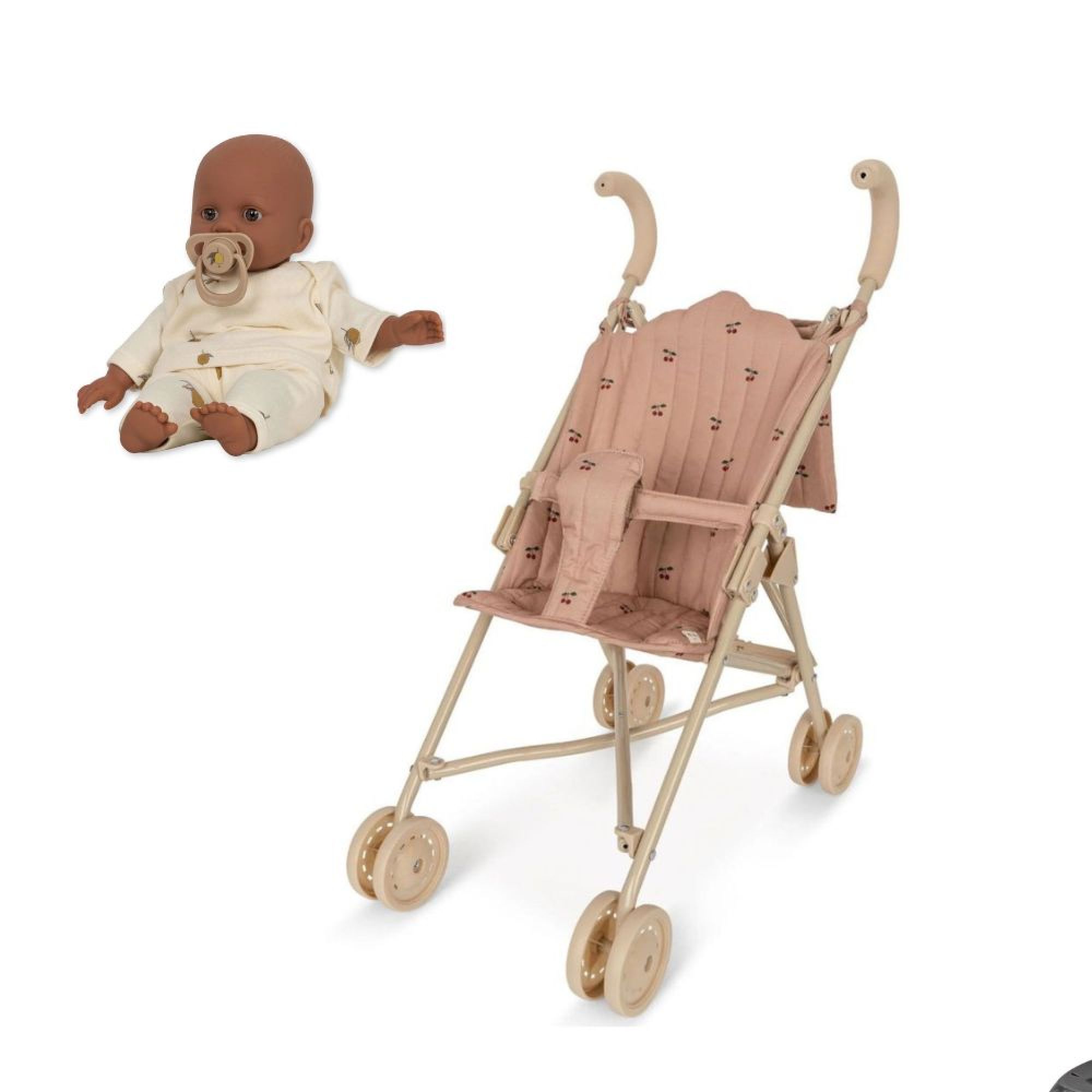 Craquez pour ce duo Poussette pour poupée - Cherry et Poupée Billie de la marque Konges Slojd. La poussette accompagnée de cette adorable poupée sera le duo idéal pour amuser votre enfant pendant des heures de jeux .