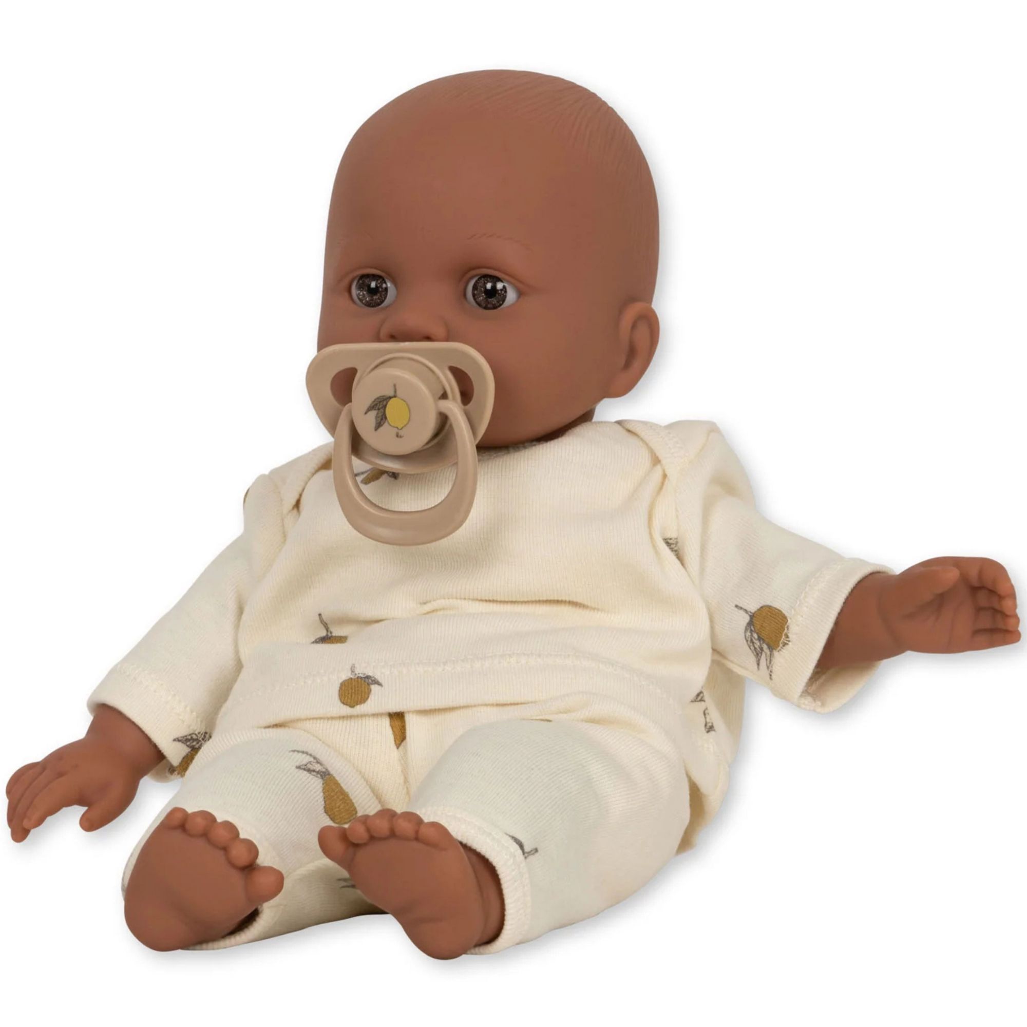 - Matière : Poupée en vinyle et tenue en coton biologique. Rembourrage en polyester recyclé.