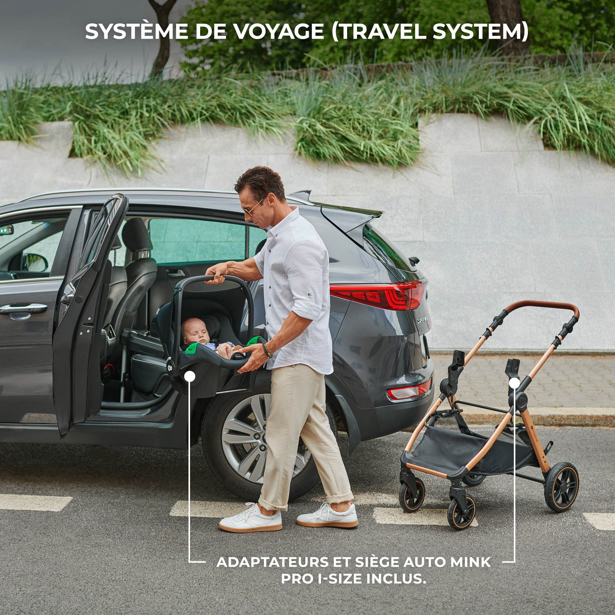 Le siège de poussette (Hamac) est réversible (face parent ou face route) pour quand bébé grandit. La nacelle est spacieuse et confortable pour les premiers mois (jusqu'à 9 kg). La nacelle est équipée d'un matelas moelleux adapté au dos fragile des nouveau-nés. Les roues sont fabriquées en mousse EVA increvable ou en caoutchouc selon les finitions, avec une excellente suspension pour absorber les chocs des trottoirs.