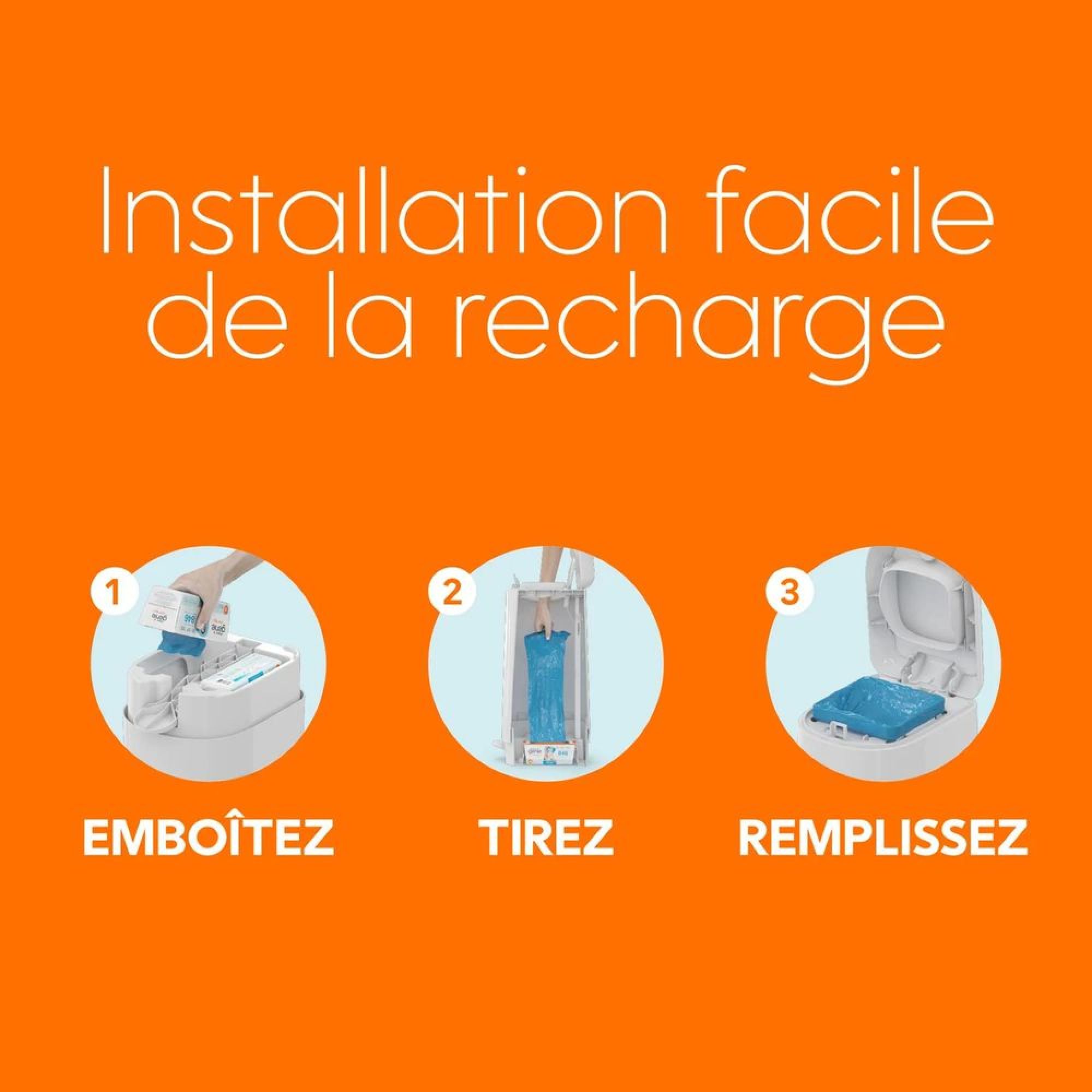 Les sacs sont fabriqués à partir d'un film multi-épaisseurs et intègrent une technologie de barrière bloque-odeur. Cette conception aide à empêcher les mauvaises odeurs de s'échapper, gardant l'air de la chambre de bébé frais. Les sacs sont souvent doublement scellés pour améliorer leur solidité et éviter les fuites, garantissant une élimination hygiénique. La recharge se compose de 18 sacs individuels pré-découpés et perforés. Cela permet de détacher et de jeter le sac rempli rapidement et sans effort, contrairement aux systèmes à film continu.