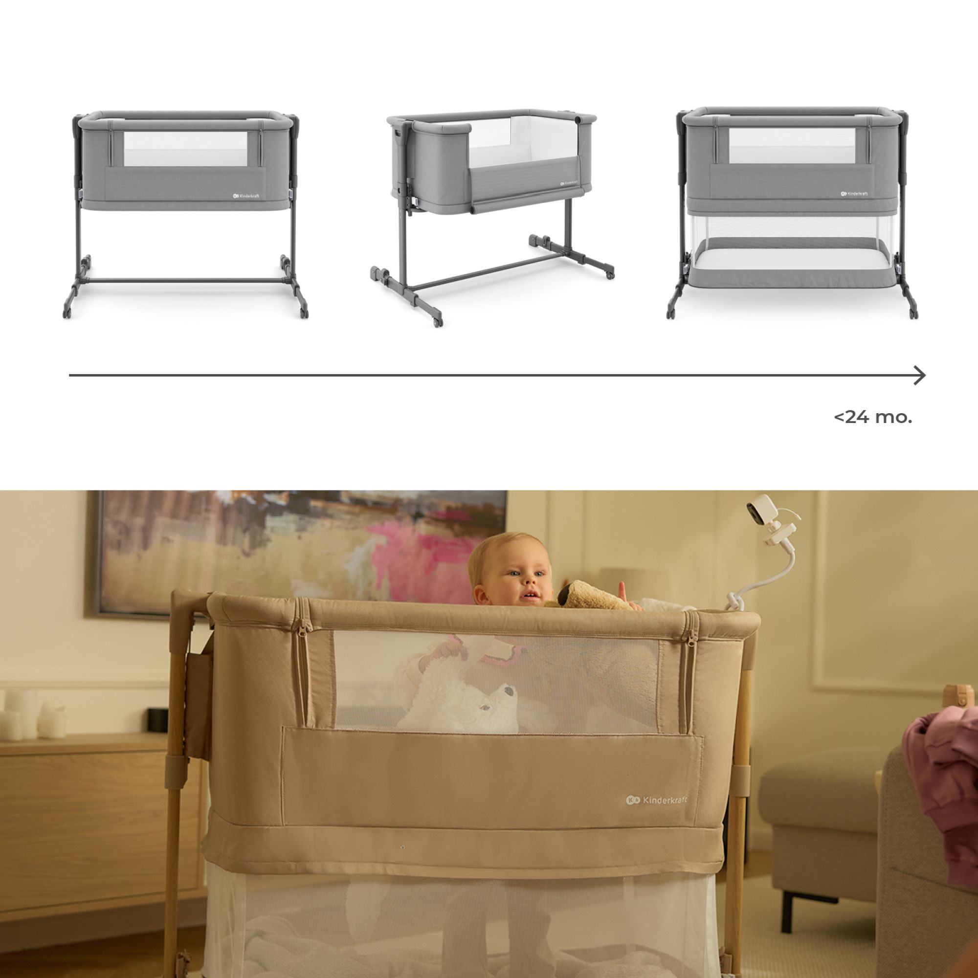 Ce lit cododo est conçu pour offrir un espace de sommeil sécurisé tout en permettant de garder bébé près de soi. Son système évolutif s’adapte aux besoins au fil des mois, tandis que sa structure assure stabilité et confort. Il convient aussi bien pour une utilisation à la maison qu’en déplacement.