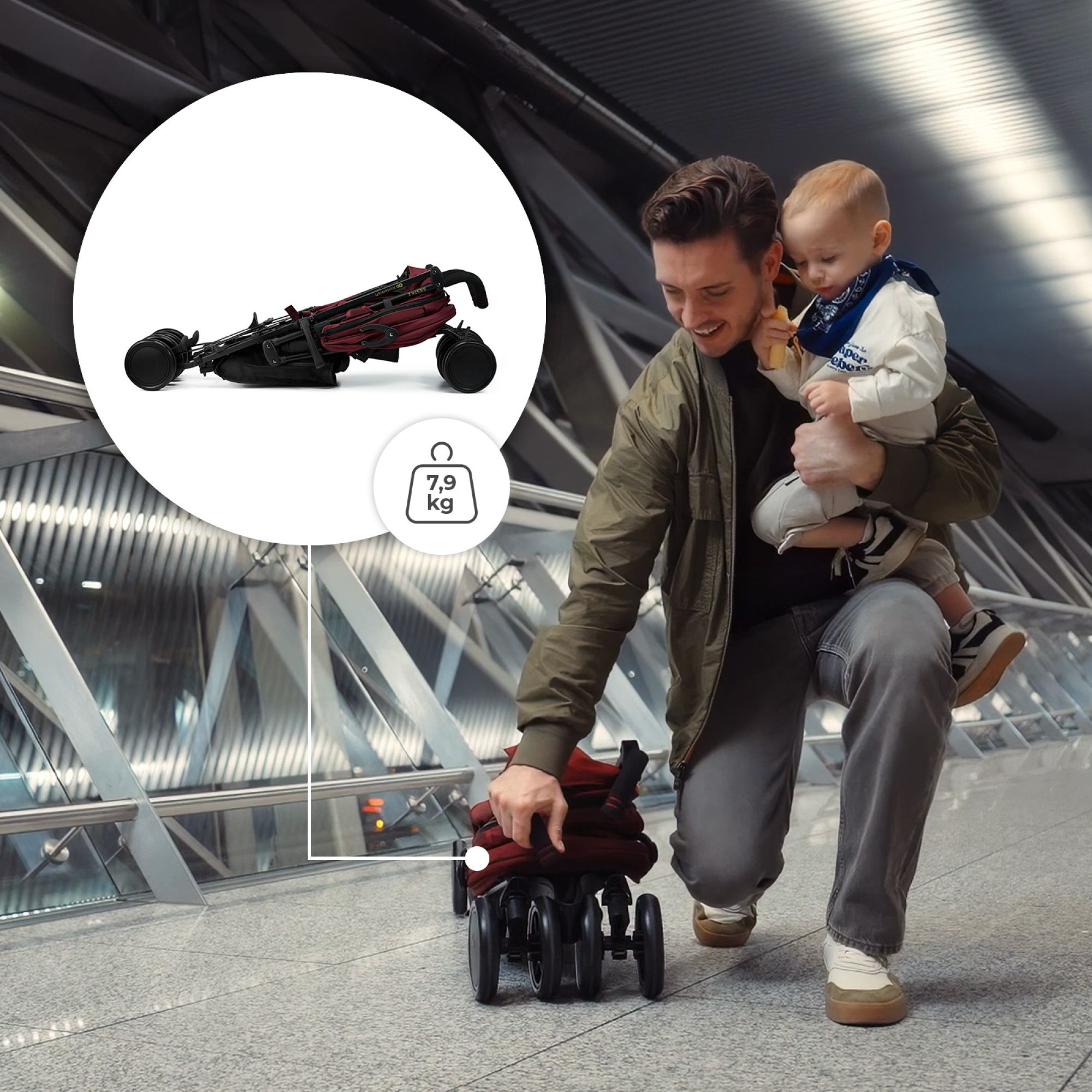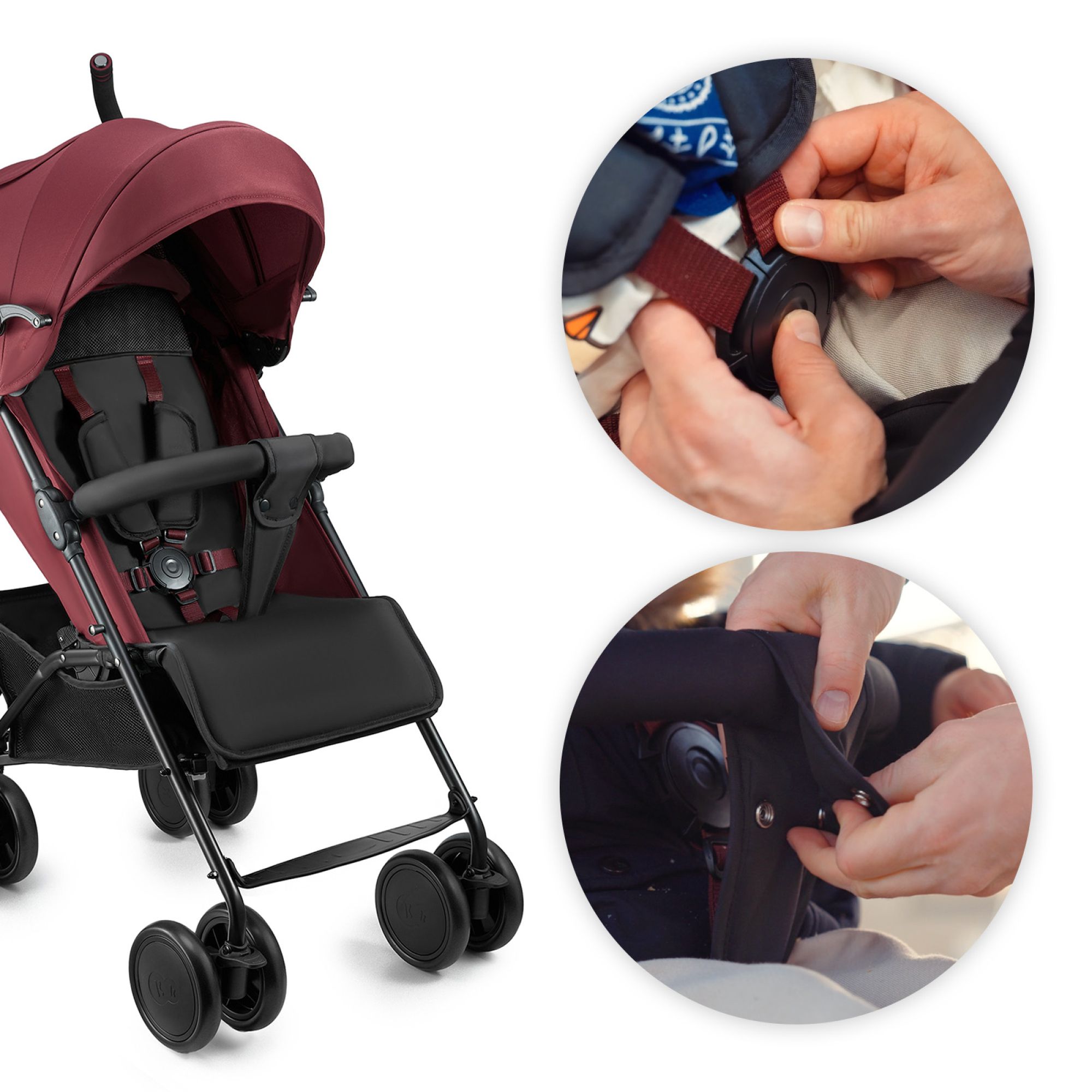 Le repose-tête garantissent la sécurité et le maintien de votre enfant. La poussette est dotée d'un pare-soleil extensible et amovible pour protéger votre enfant du soleil, ainsi que d'une capote imperméable pour les jours de pluie.