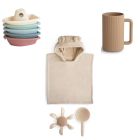 Craquez pour ce pack de bain de la marque Mushie ! Il comprend un jouet de bain gobelet, un moulin à eaux, des jouets de bain bateaux et un poncho de bain Ours. Tout le nécessaire pour amuser votre enfant et le sécher après le bain.