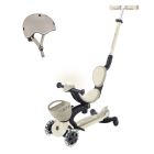 Optez pour ce pack trottinette évolutive Go Up 360° lumineuse Taupe avec le casque XXS/XS couleur Sable de la marque Globber. Conçue pour une maniabilité ultime, ce scooter à trois roues avec siège se transforme en porteur, draisienne et trottinette pour accompagner votre enfant de ses premiers pas jusqu'à 9 ans et plus. Grâce à son module arrière breveté permettant une direction parentale à 360°, vous pouvez facilement guider votre enfant lors de vos sorties. Evolutive votre enfant profitera longtemps de son jouet en toute sécurité grâce au casque fourni dans ce pack. Le casque pour bébé assure une protection optimale grâce à sa coque extérieure en polycarbonate et sa doublure en mousse EPS, offrant un ajustement confortable et sécurisé. Équipé de lumières LED arrière et disponible en plusieurs couleurs vives, il garantit une visibilité maximale et permet aux parents de choisir le style qui convient le mieux à leur enfant.