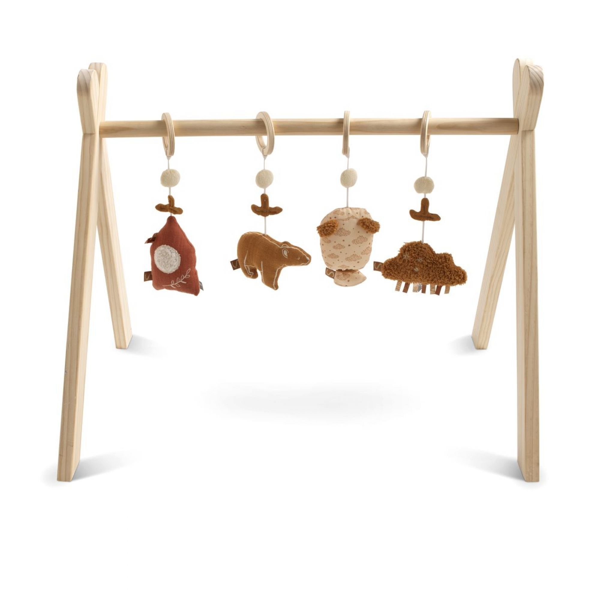 Mettre l'arche sur le tapis afin de créer un réel espace de jeu et favoriser le développement de sa motricité globale. Cet arche de jeux comprend de 4 jouets à suspendre.