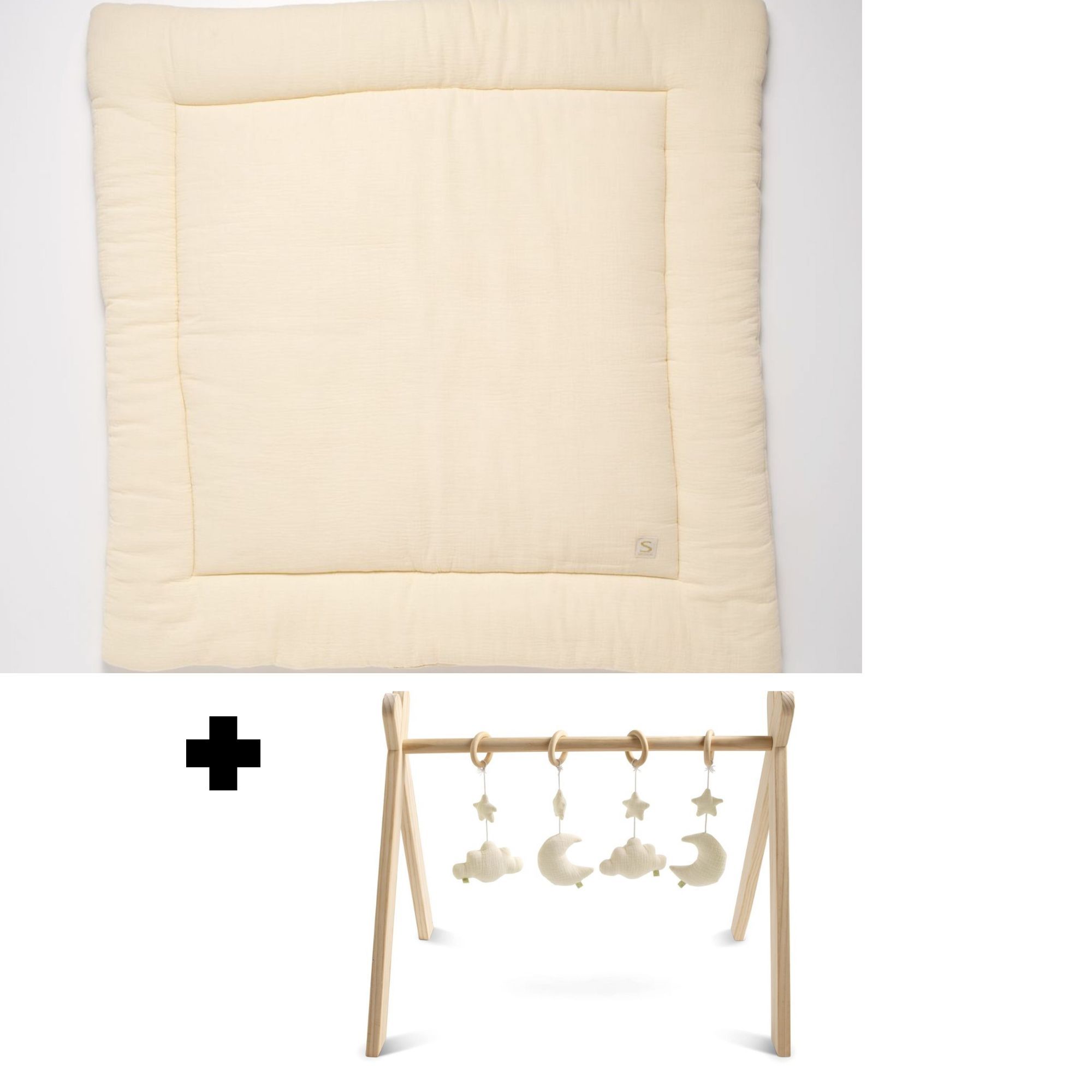 Tapis de parc et arche d'éveil avec jouets uni vanilla