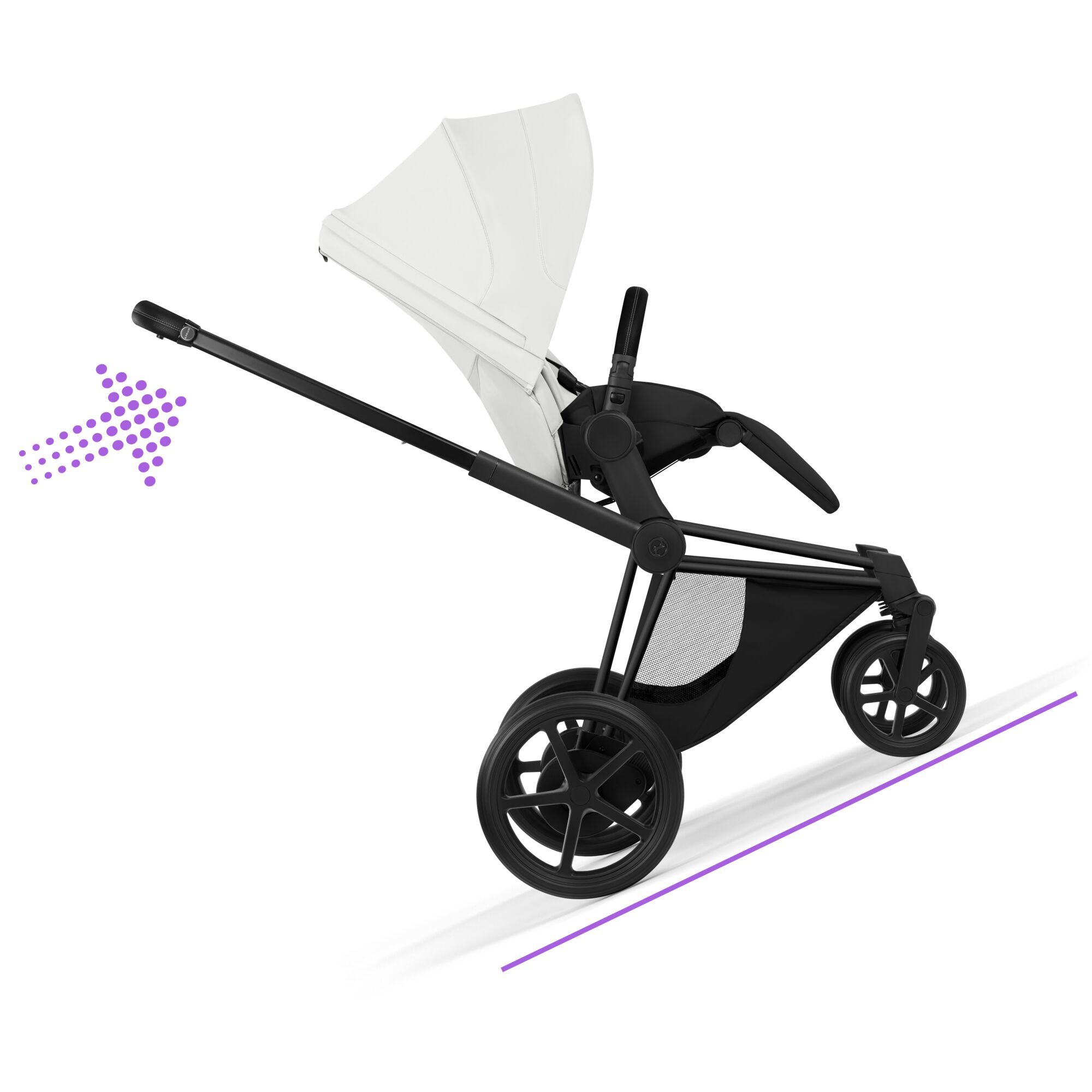 Simplifiez vos déplacements avec la poussette e-Priam 3 de la marque Cybex composée de son châssis électrique et de son assise, conçue pour accompagner votre enfant dès la naissance avec un maximum de confort et de technologie. Grâce à son assistance électrique intégrée, elle facilite les montées et s’adapte aux terrains irréguliers comme les pavés, les chemins ou le sable, pour des balades sans effort. Son mode bercement, contrôlable via application, apaise votre bébé en douceur lors des moments de repos. Côté confort, l’assise ergonomique et réversible propose une position allongée, un repose-jambes réglable et un dossier avec inserts en mesh pour une bonne ventilation. Son canopy extensible XXL UPF50+ protège efficacement votre enfant des éléments. Pratique au quotidien, elle dispose d’un pliage compact, d’un harnais ajustable à une main et d’un guidon réglable pour s’adapter à chaque parent. Sa suspension intégrale et son mode deux-roues assurent une excellente maniabilité en toutes circonstances. Compatible Travel System, elle peut être utilisée avec la nacelle pliable ou une coque auto (vendues séparément).