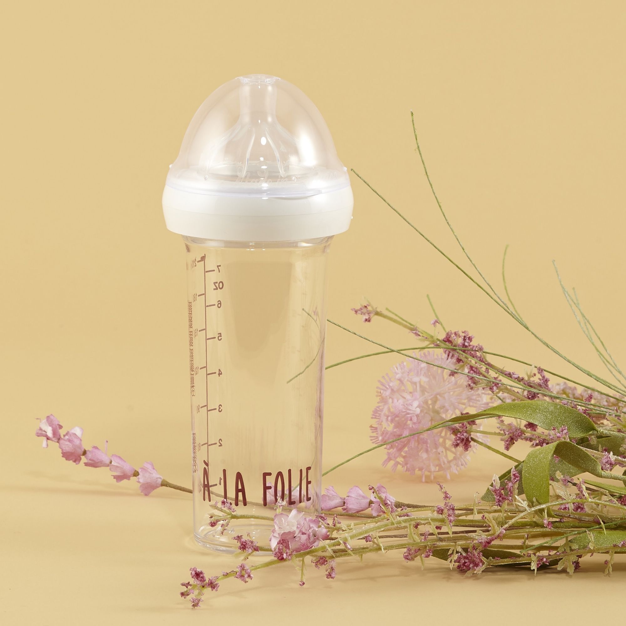 Découvrez le biberon 210 ml À la folie 0-6 mois de la marque le Biberon Français. Il est équipé d'une tétine 0-6 mois (S) avec un système anti-colique. Robuste dans le temps, ce biberon naissance reste beau car il ne capte ni les couleurs ni les odeurs des aliments. Il peut contenir jusqu'à 7 dosettes de lait en poudre. Ce biberon est 100% fabriqué en France, il ne quittera plus votre bébé !