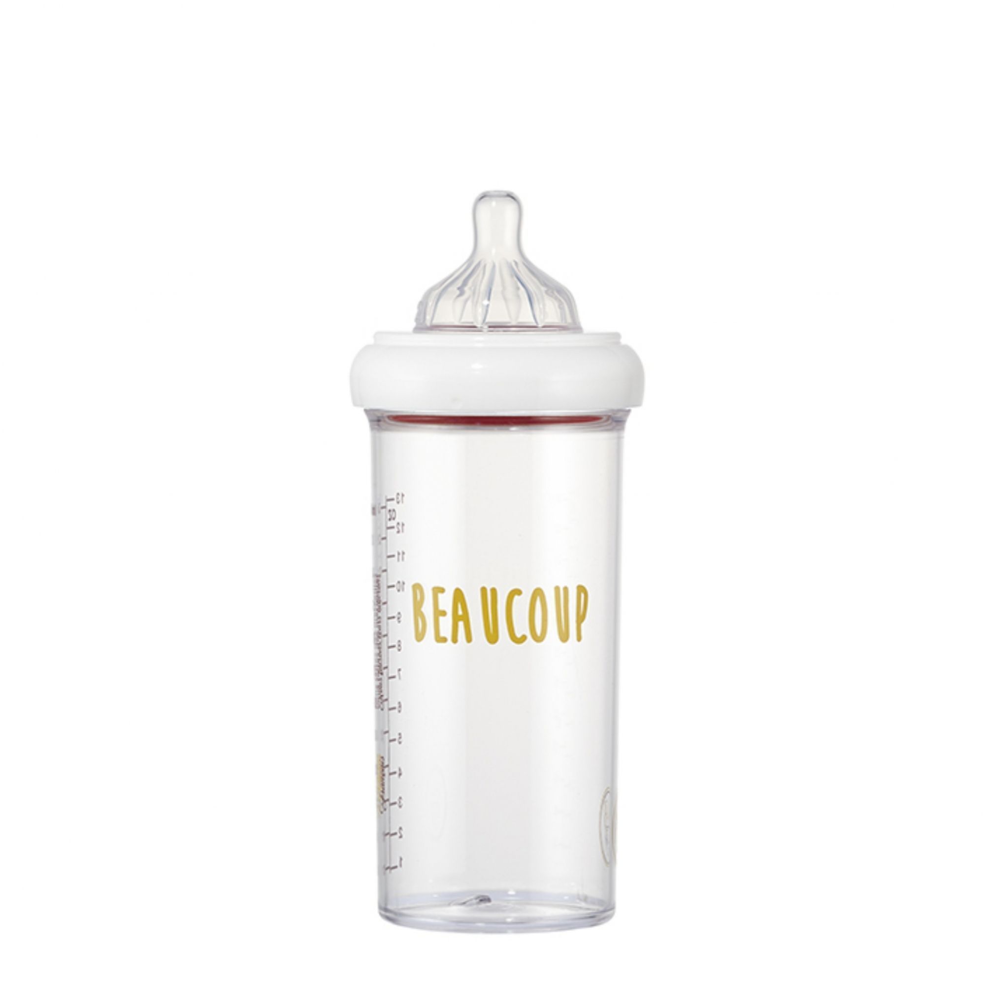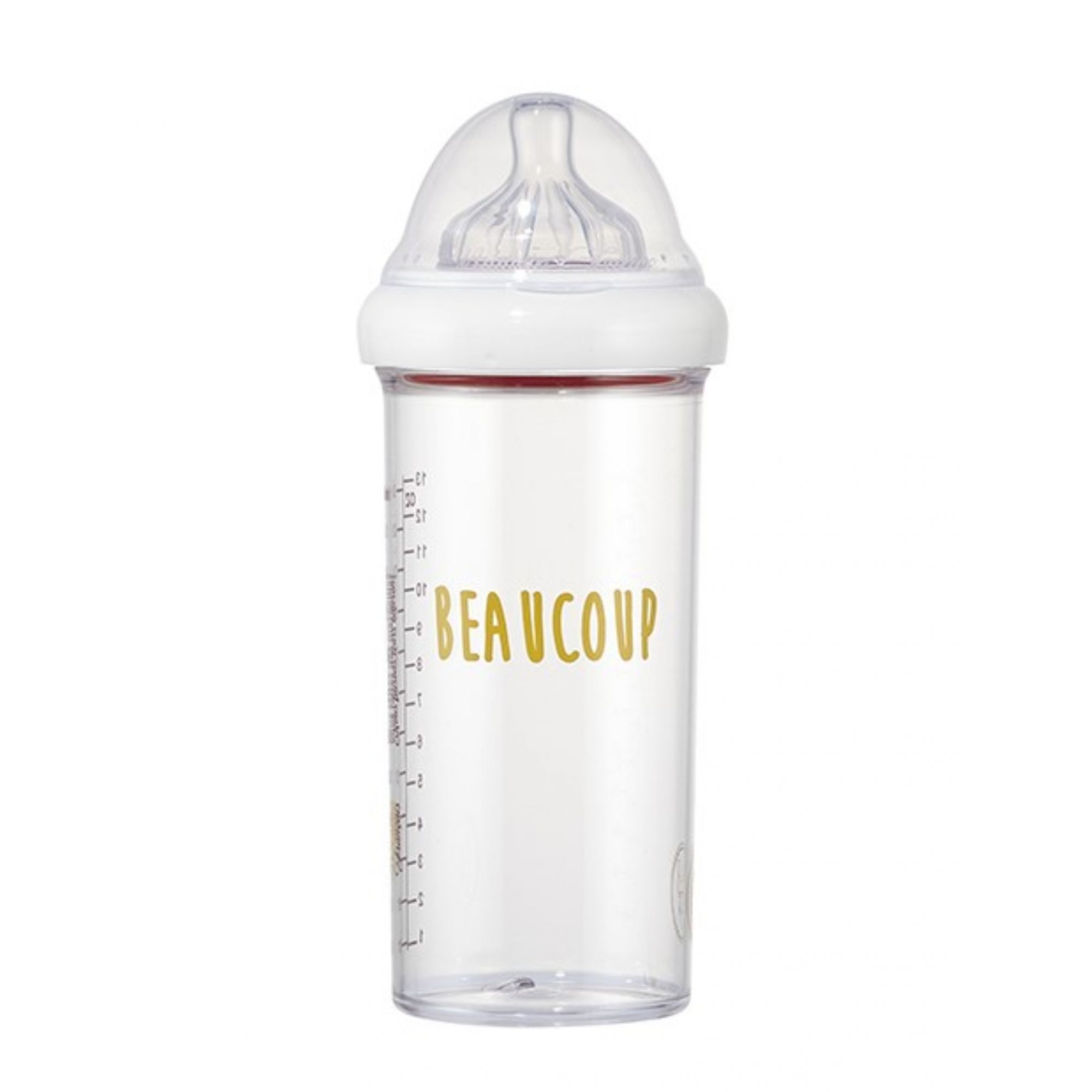 Découvrez le biberon 360 ml Beaucoup 6 mois+ de la marque le Biberon Français. Il est équipé d'une tétine + 6 mois (M) avec un système anti-colique. Robuste dans le temps, il reste beau car il ne capte ni les couleurs ni les odeurs des aliments. Ce biberon est 100% fabriqué en France. Ce joli biberon ne quittera plus votre bébé !
