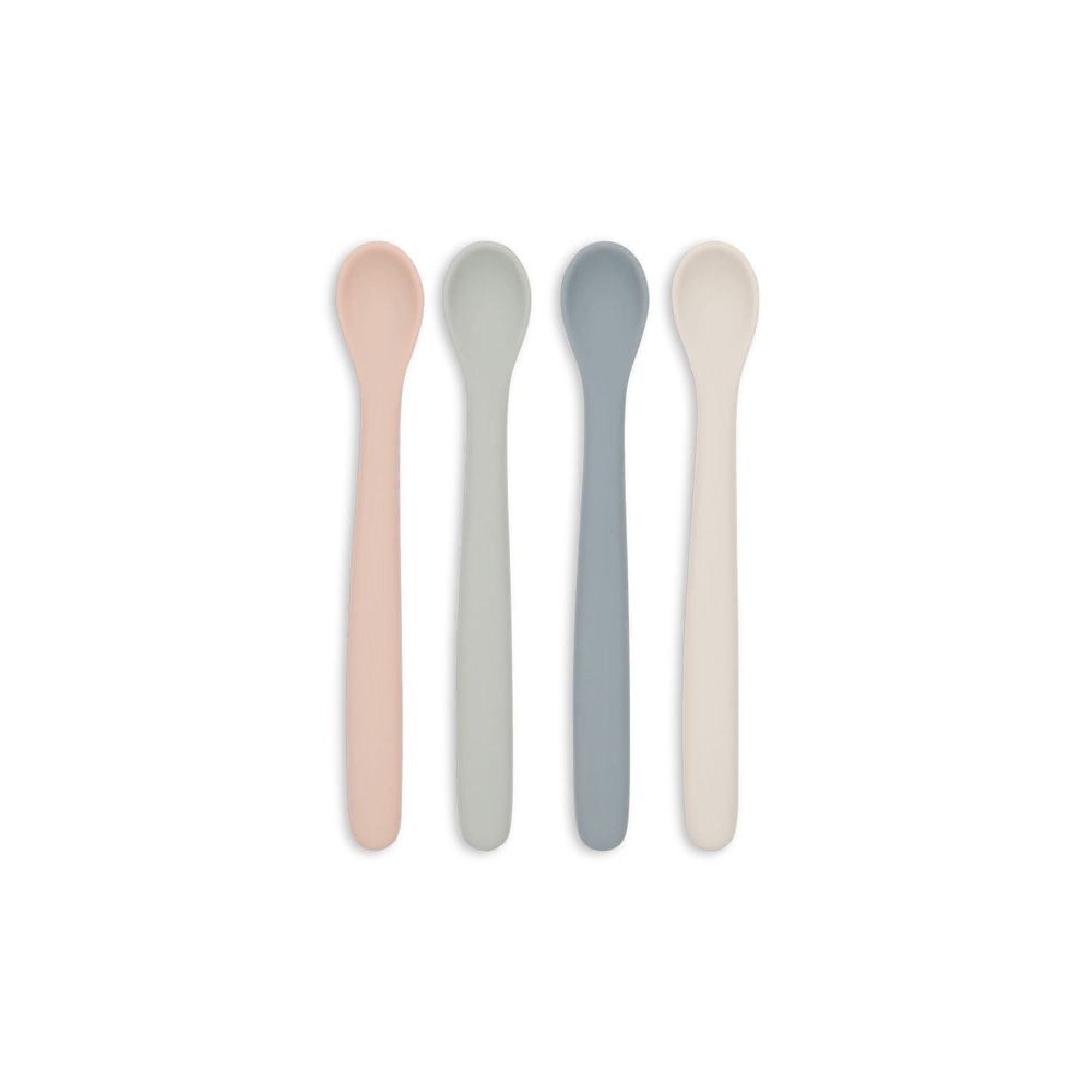 Découvrez ce lot de 4 cuillères de la marque Konges Slojd . Ces cuillères en silicone pour bébé sont conçues pour encourager les bébés à manger seuls en toute sécurité dès 6 mois. Elles facilitent l'adaptation aux nouveaux aliments et aux aliments solides. Le manche ergonomique offre une prise en main confortable et confortable pour les petites mains , ainsi votre bébé pourra participer seul aux repas de la famille ;