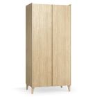 Choisissez l'armoire 2 portes Chêne Muve de la marque Vox. Derrière les deux grandes portes, il y a deux espaces de rangement distincts : un espace avec des étagères et un espace avec des tringles.