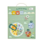 Optez pour le calendrier pour enfant en tissu vert Au fil du temps de la marque Lilliputiens. Sur ce calendrier, votre enfant indiquera la date du jour, la météo, le mois et l'année. Il pourra même définir son humeur du jour.