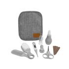 Le set de soins classique contient limes à ongles, ciseaux, brosse à dents qui se clips au bout des doigts, peigne, brosse douce, thermomètre flexible numérique, mouche bébé et coupe-ongles ! Très pratique, ce set est suffisament grand pour pouvoir ranger les affaires de toilette de votre bébé quand vous partez en voyage.