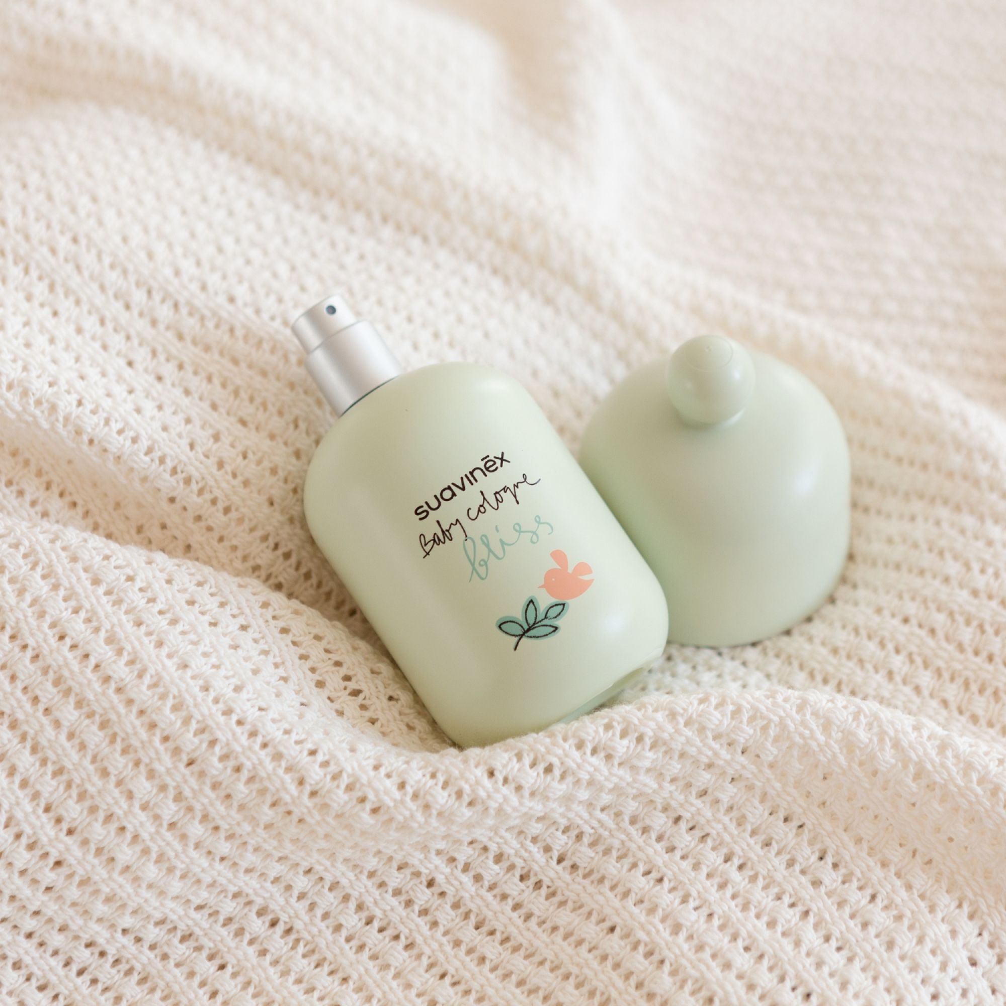 La Baby Cologne Bliss de la marque Suavinex est une eau de Cologne délicate et rafraîchissante, spécialement formulée pour la peau sensible des nouveau-nés. Son parfum doux, aux notes d'agrumes, de fleur d'oranger et de musc blanc enveloppe délicatement bébé et toute la famille. Avec très peu d’alcool, elle ne tâche pas et peut s’appliquer en toute sécurité sur les vêtements grâce à son vaporisateur pratique. Co-créée avec un panel de consommateurs, cette fragrance unisexe est idéale pour parfumer toute la famille au quotidien.