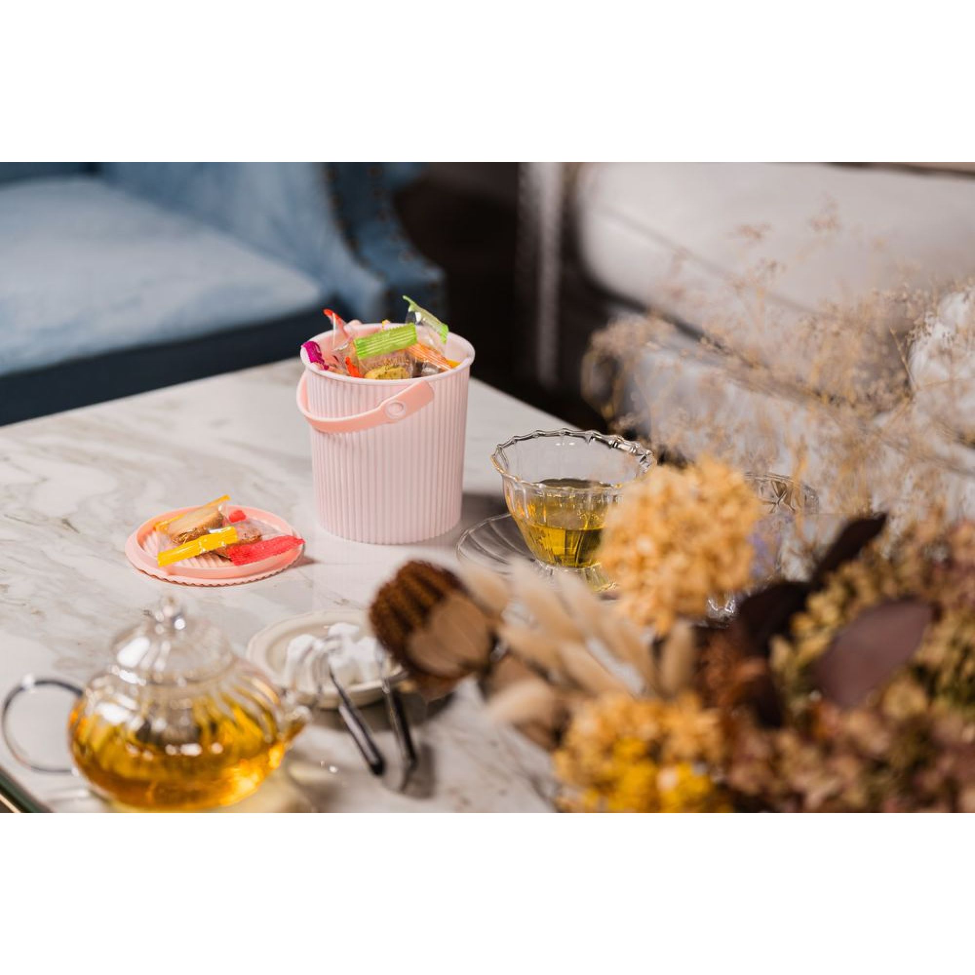 La boîte est ondulée avec un couvercle en silicone souple. Ce produit de rangement allie esthétisme et praticité. Il fera office de belle décoration d'intérieur. Le produit est équipé d'une poignée pour faciliter son transport.