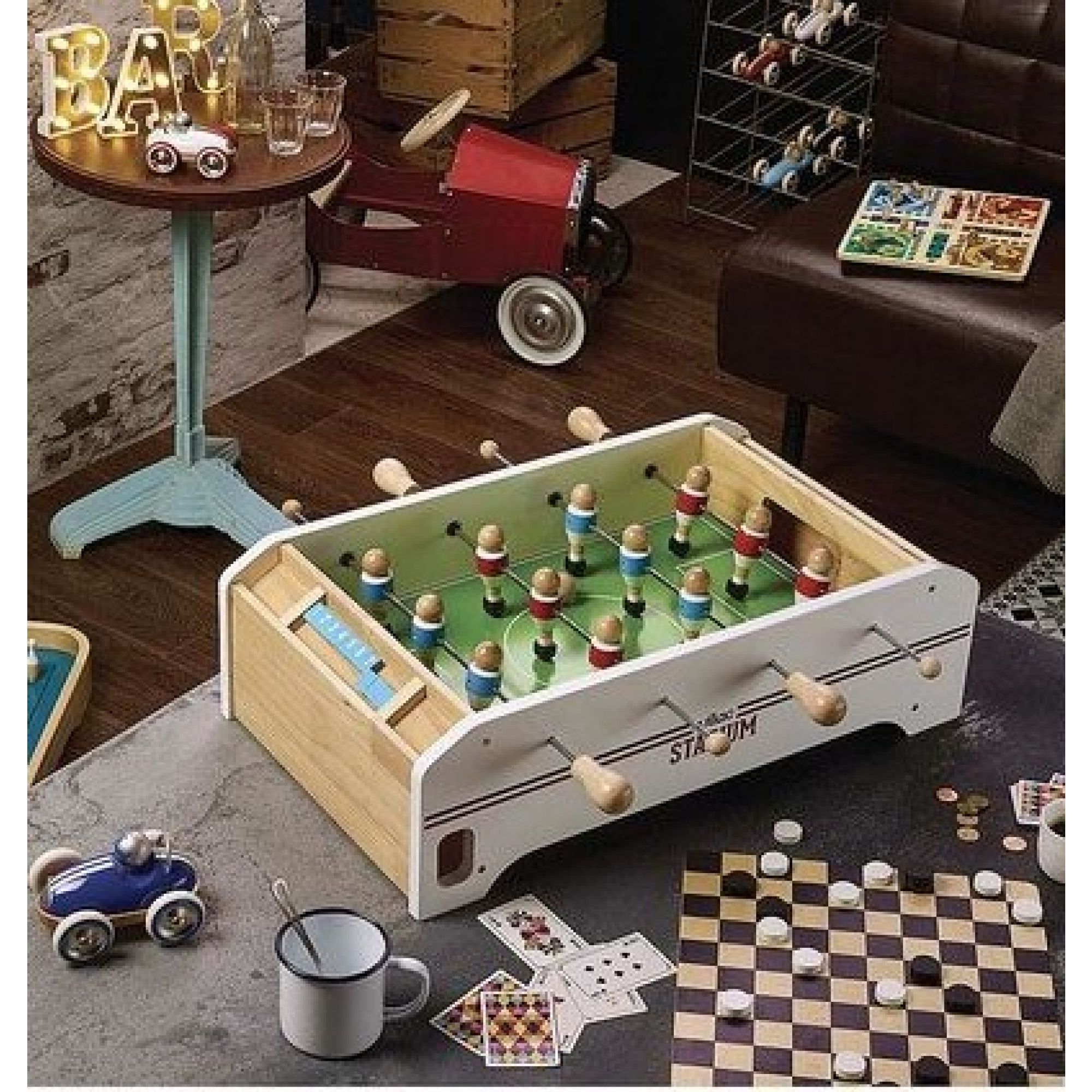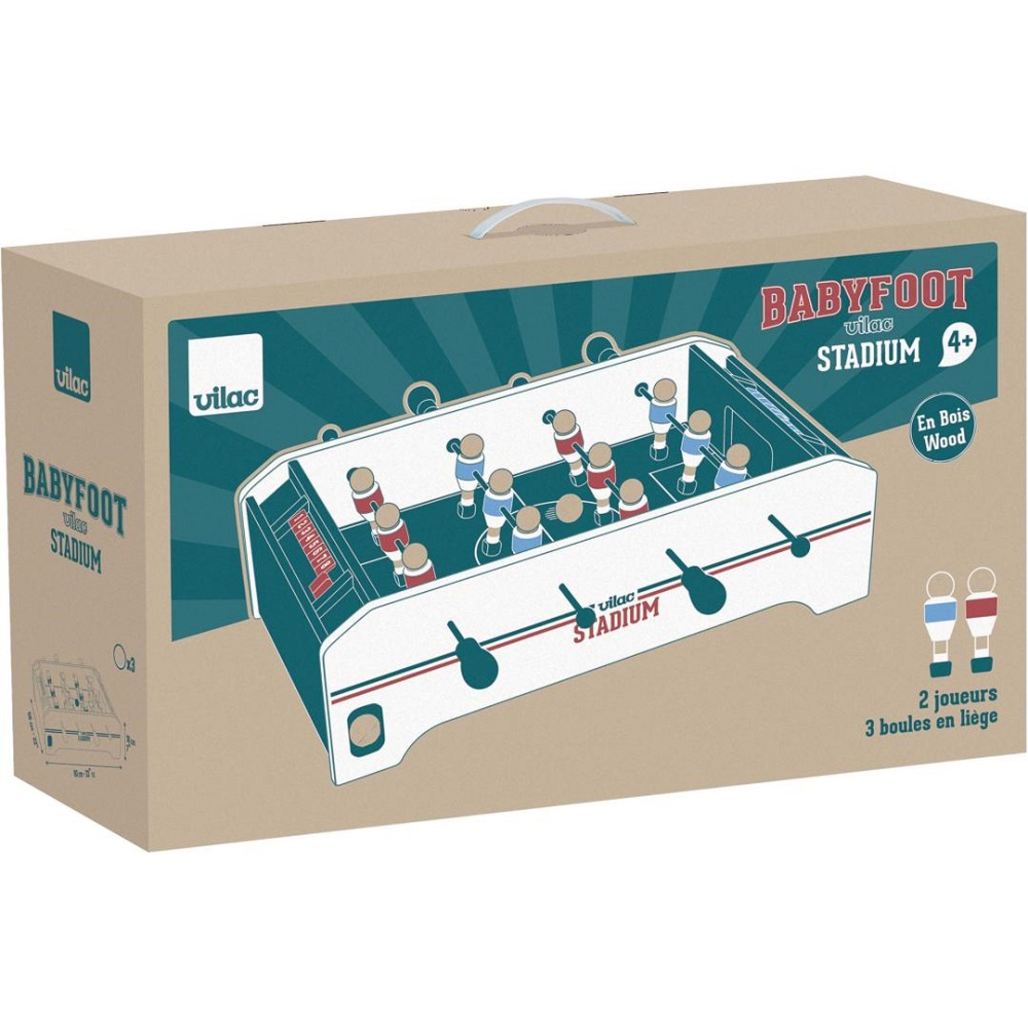 Découvrez le babyfoot stadium en boisde la marque française Vilac, un joli babyfoot de table enfant à poser pour des parties de foot à partir de 4 ans. Les petits et grands enfants vont adorer marquer des buts sur ce babyfoot enfant.
