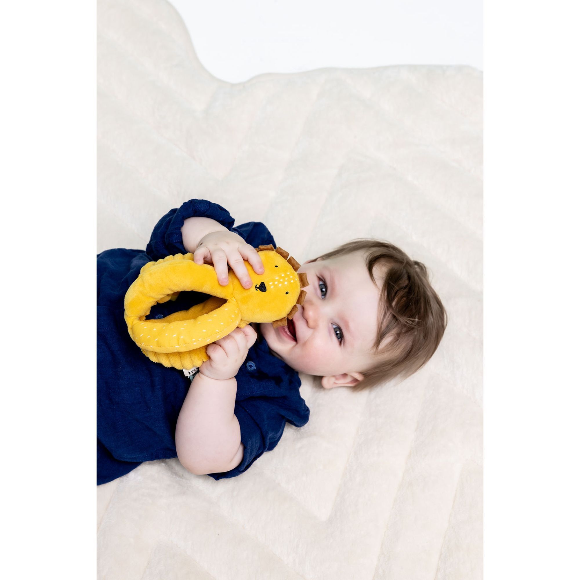 Découvrez la balle de préhension Mr.Lion de Trixie est un jouet d’éveil idéal pour accompagner le développement moteur des bébés. Conçue dans des matières douces et durables comme le coton biologique et le polyester recyclé, elle invite l'enfant à explorer le toucher, la coordination et le mouvement. Son bruit de papier froissé éveille la curiosité et encourage les premiers gestes d’exploration tout en douceur.