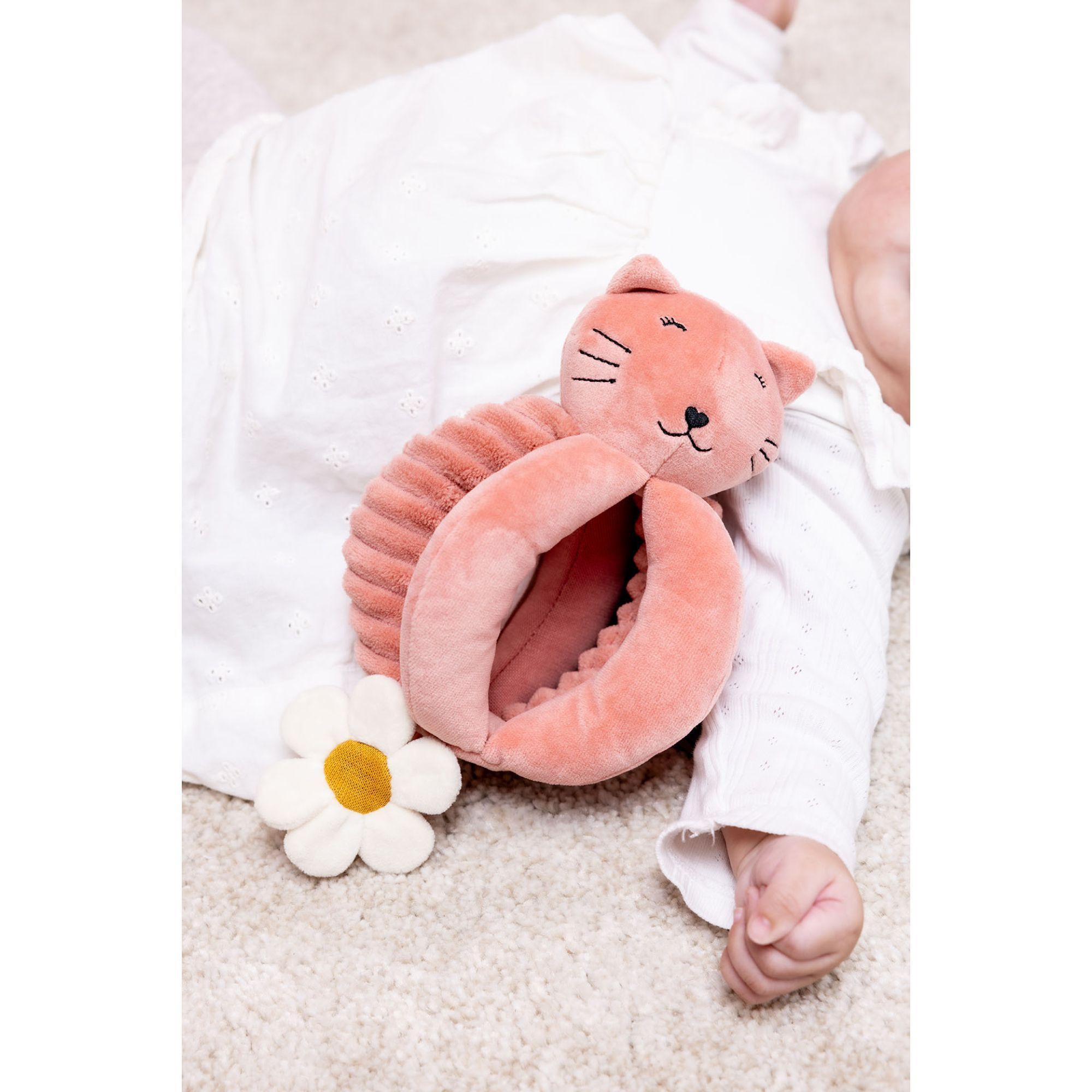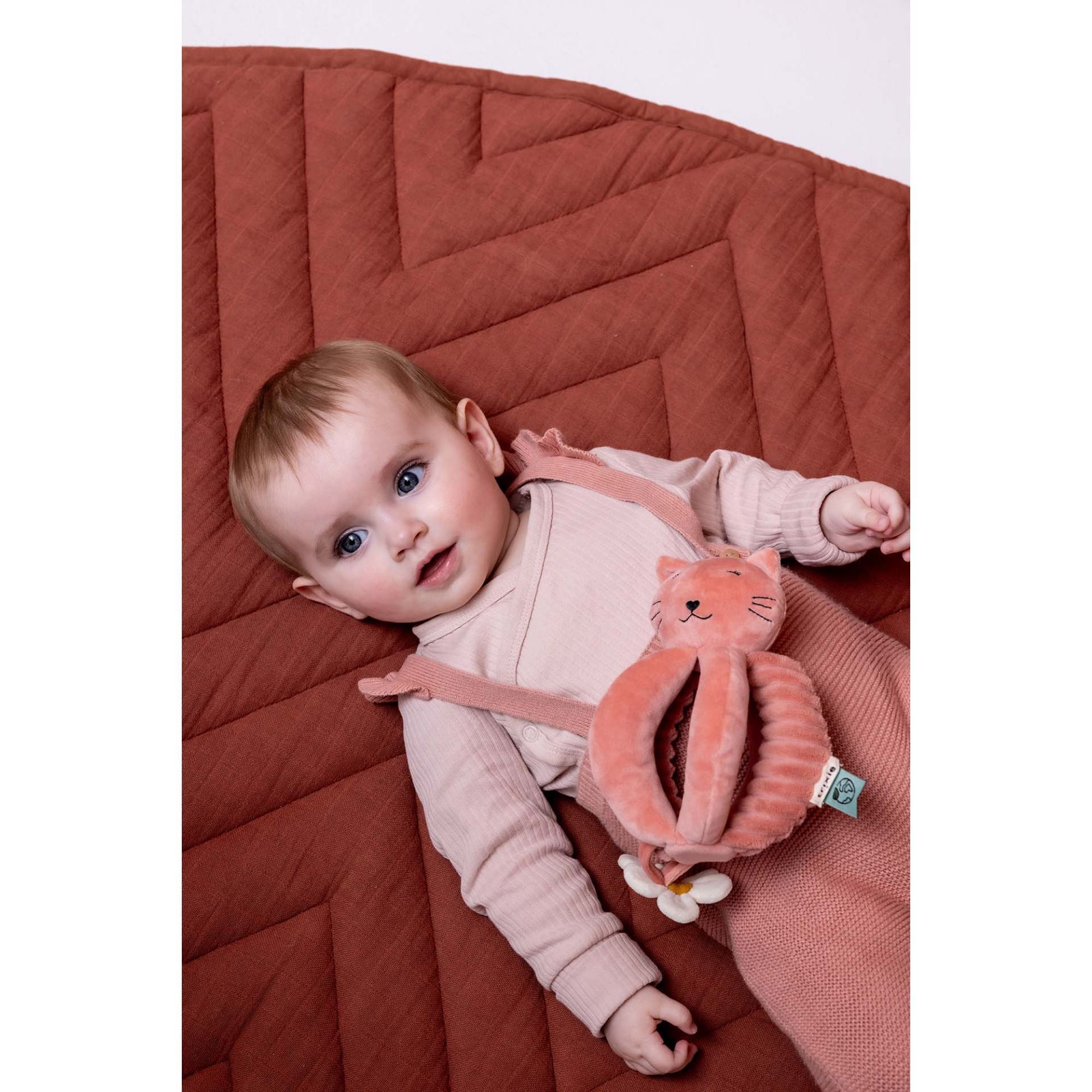 Découvrez la balle de préhension Mrs. Cat de Trixie est un jouet d’éveil idéal pour accompagner le développement moteur des bébés. Conçue dans des matières douces et durables comme le coton biologique et le polyester recyclé, elle invite l'enfant à explorer le toucher, la coordination et le mouvement. Son bruit de papier froissé éveille la curiosité et encourage les premiers gestes d’exploration tout en douceur.