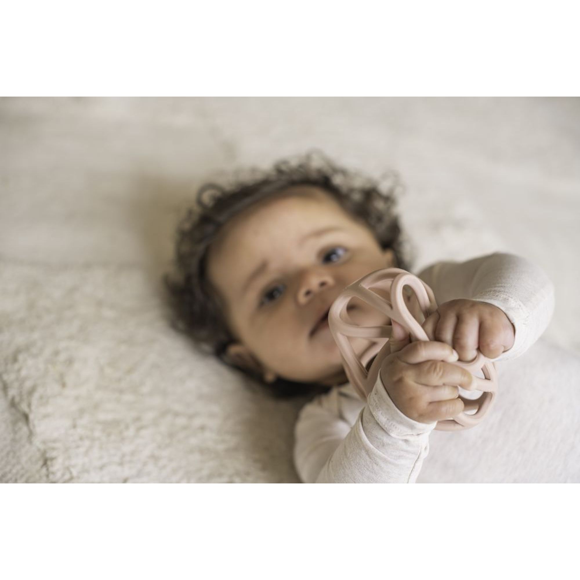Sa texture en silicone et ses formes géométriques sont idéales pour masser et apaiser les gencives de bébé lors des poussées dentaires. Elle sert donc également d'anneau de dentition. Grâce à sa conception ouverte et ses formes géométriques creuses, la balle est exceptionnellement facile à saisir pour les petites mains. Cela encourage le bébé à développer sa préhension et sa coordination œil-main.