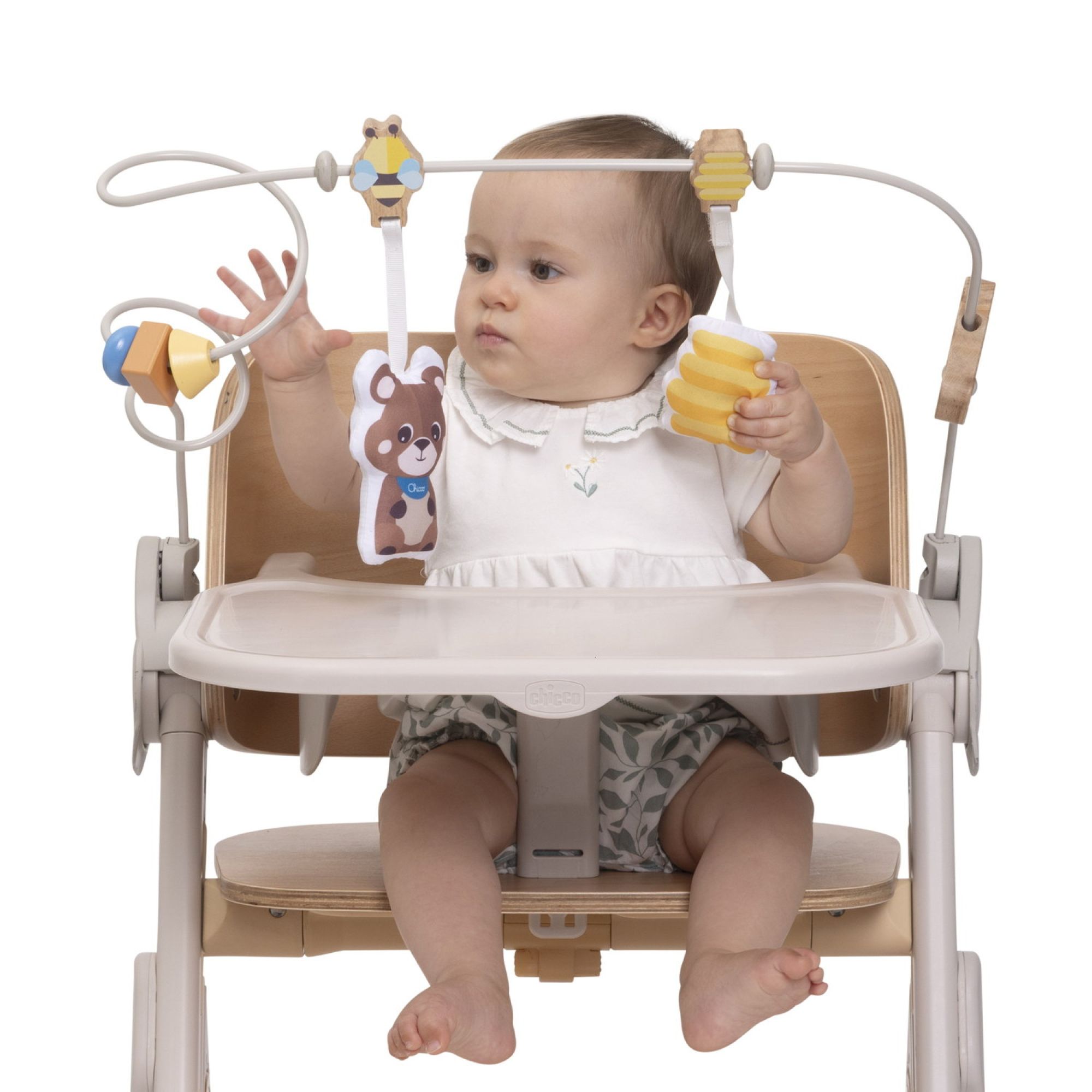 Cette barre de jeu est conçue pour accompagner bébé dans son éveil tout en restant confortablement installé dans sa chaise haute. Elle propose différentes activités qui stimulent les sens et encouragent la manipulation. Facile à fixer et à retirer, elle s’intègre parfaitement dans le quotidien des parents.