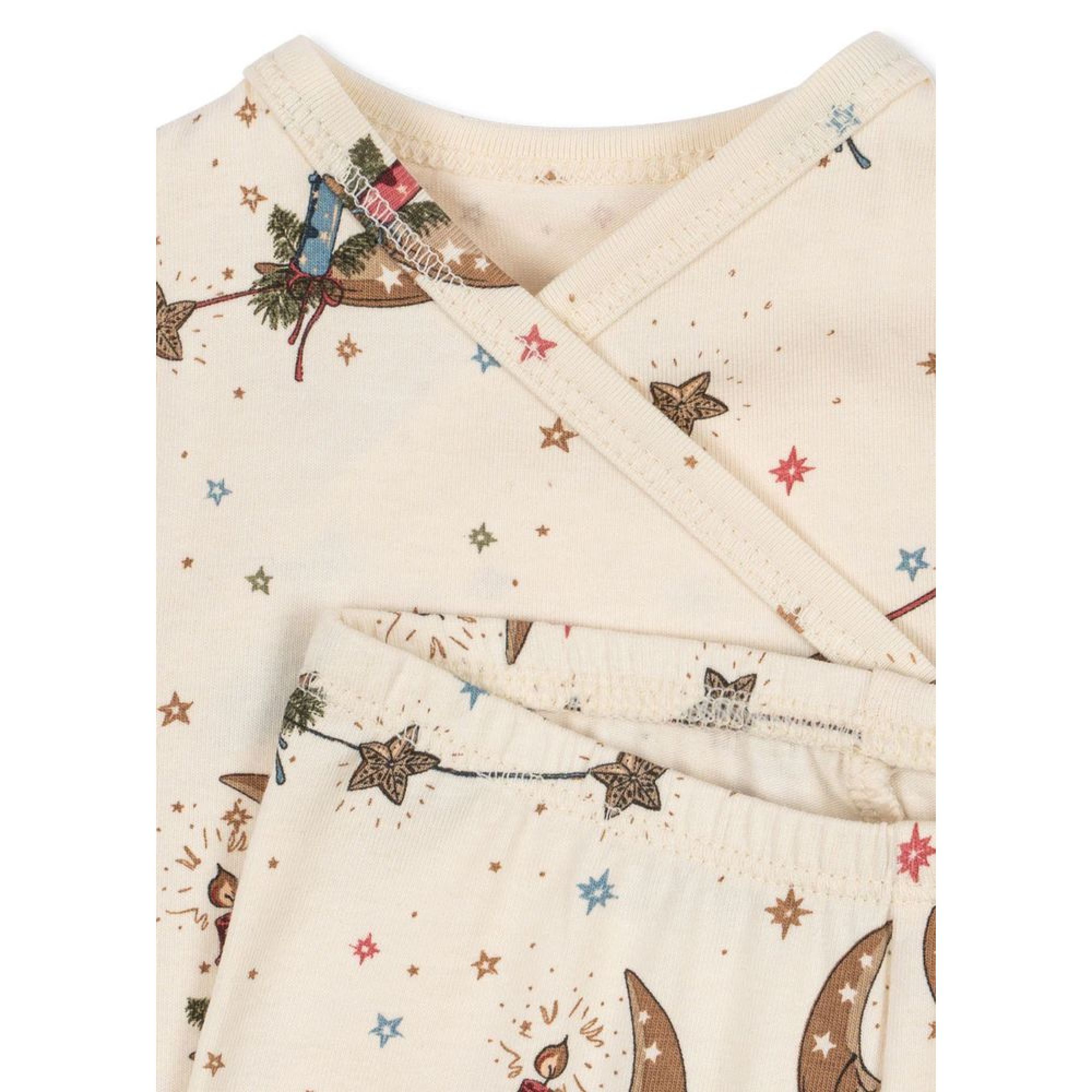 Choisissez cet ensemble de naissance 0-1 mois , modèle Luna de la marque Konges Slojd. Il a été spécialement conçu pour les bébés dès la naissance. Cet ensemble de vêtements composé d'un body et d'un legging assortis est fabriqué en coton bio légèrement extensible. Facile à mettre grâce aux boutons pression sur les côtés , votre enfant passera des nuits confortablement habillés.