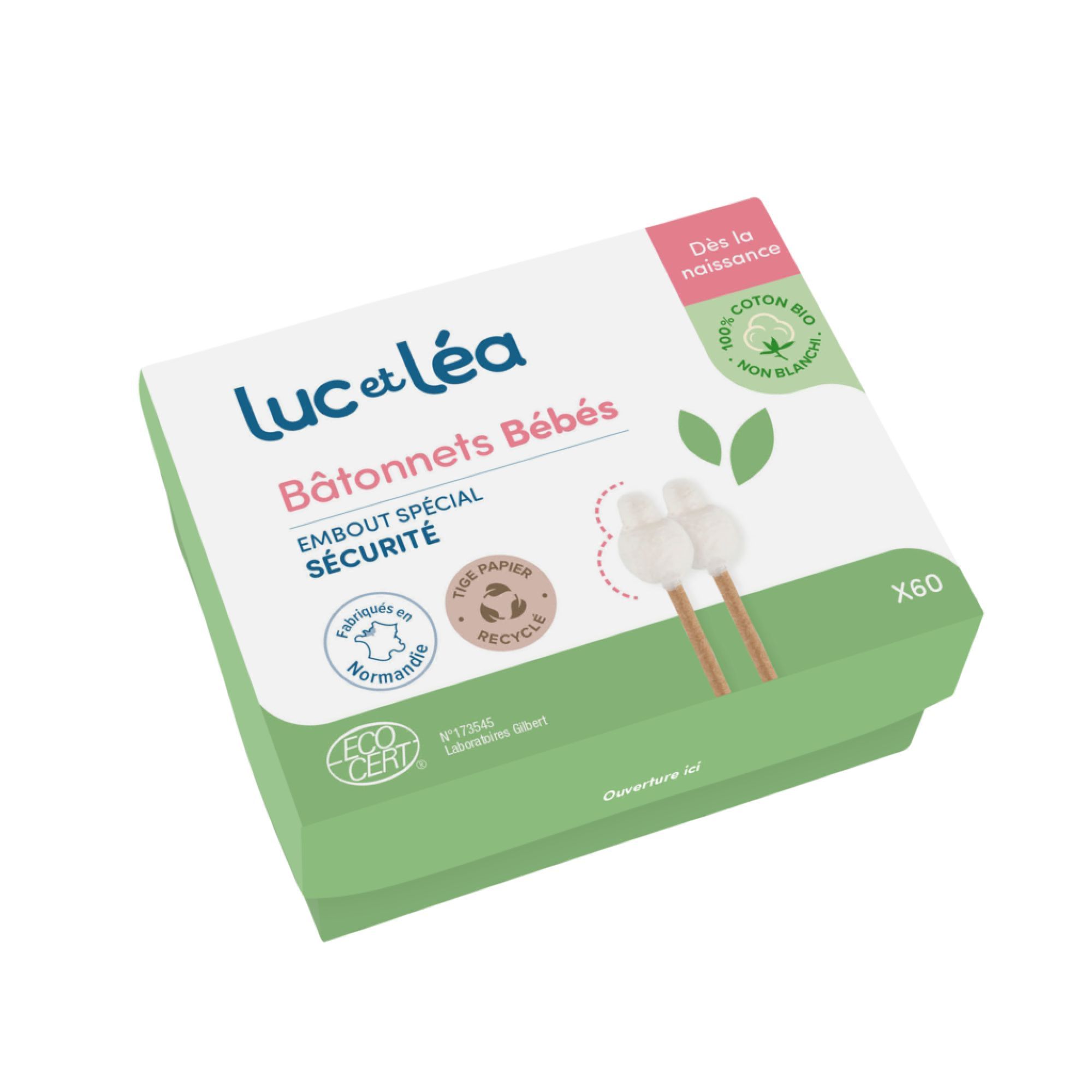 Les bâtonnets ouatés en coton bio Luc et Léa sont conçus avec un embout spécial sécurité qui limite la profondeur dans l’oreille et évite la formation de bouchons de cérumen. Le coton 100% biologique, issu de l’agriculture respectueuse de l’environnement, offre une douceur incomparable tout en minimisant les risques d’allergie. La tige en papier certifié FSC s’inscrit dans une démarche durable et responsable. Sans substances nocives et adaptés dès la naissance, ils conviennent parfaitement à l’hygiène quotidienne des bébés.