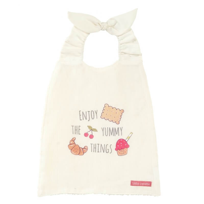 Choisissez la serviette bavoir Yummy de la marque Little Crevette pour les repas de bébé. Ce grand bavoir élastiqué s'enfilera facilement au cou de bébé pour protéger ses vêtements. Avec sa forme originale et son joli noeud, il fera un super cadeau de naissance !
