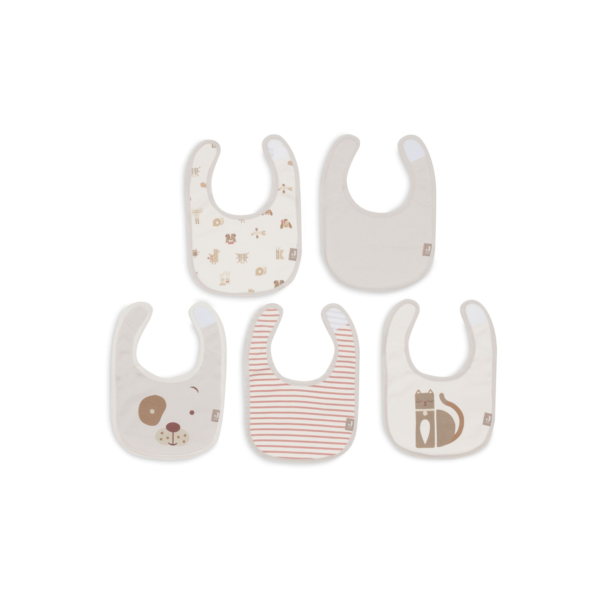 Le lot de 5 bavoirs Jollein sera pratique pour les moments d'agitation avec bébé pour éviter de tâcher ses vêtements. Ils sont imperméables et pourront être nettoyés en machine à 40°. Ils trouveront facilement sa place avec les langes et les habits de votre enfant.
