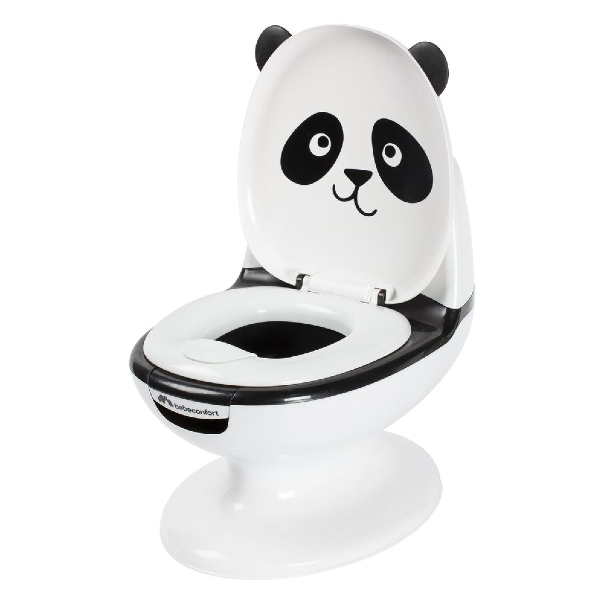 Découvrez le pot pour bébé mini toilette Panda Black de la marque Bebeconfort. Ce toilette miniature encourage bébé à utilsier le pot en imitant ses parents et en ayant ses propres toilettes. Son joli design donnera envie à bébé d'apprendre la propreté. Pour faire comme les grands ce toilette miniature imite le bruit de la chasse d'eau.