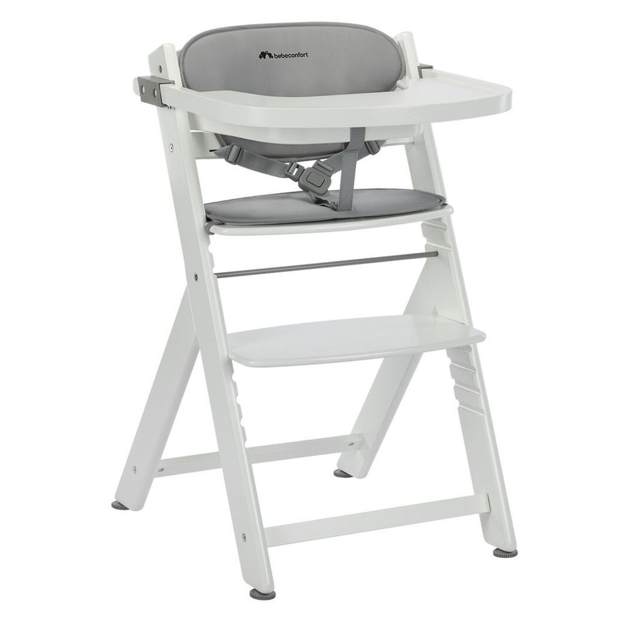Découvrez la chaise haute évolutive en bois avec le coussin de la marque Bebeconfort. La chaise haute en bois Timba² est 3 en 1. Utilisez la de 6 à 18 mois avec la tablette et le harnais 3 points, puis jusqu'à 3 ans sans la tablette et en ajustant l'assise et le marche pieds et enfin, jusqu'à 10 ans comme chaise pour enfant.