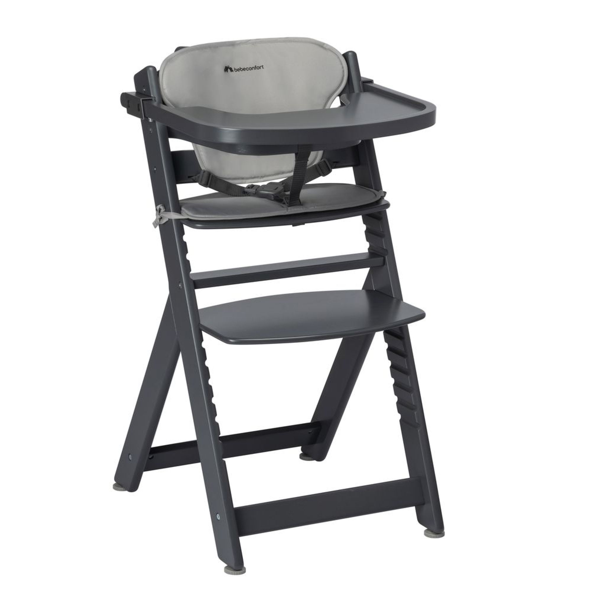 Découvrez la chaise haute évolutive en bois avec le coussin de la marque Bebeconfort. La chaise haute en bois Timba est 3 en 1. Utilisez la de 6 à 18 mois avec la tablette et le harnais 3 points, puis jusqu'à 3 ans sans la tablette et en ajustant l'assise et le marche pieds et enfin, jusqu'à 10 ans comme chaise pour enfant.