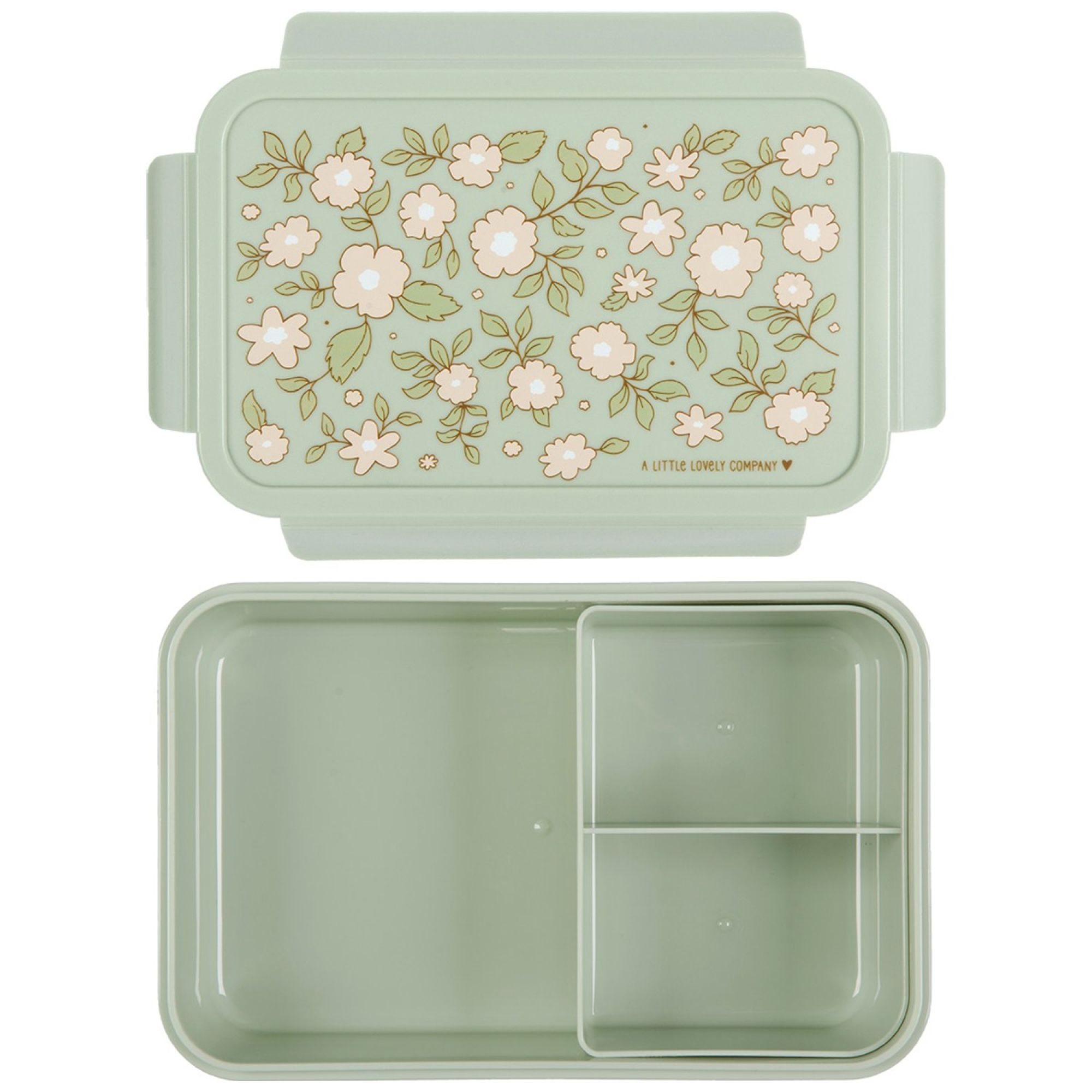 Craquez pour la lunch box Fleurs Sage de la marque A Little Lovely Company ! Elle est pratique avec ses différents compartiments amovibles, et elle transportera le goûter et le déjeuner en toute sécurité avec son couvercle clipsable et le joint en silicone. Elle trouvera parfaitement sa place dans le sac à dos de votre enfant pour l'accompagner à l'école ou lors de ses sorties scolaires. Elle est disponible en plusieurs modèles.