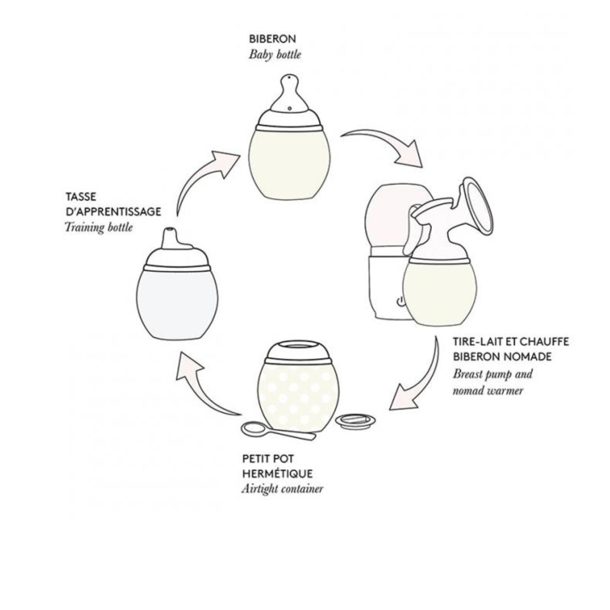 Biberon évolutif : petit pot ou tasse d’apprentissage