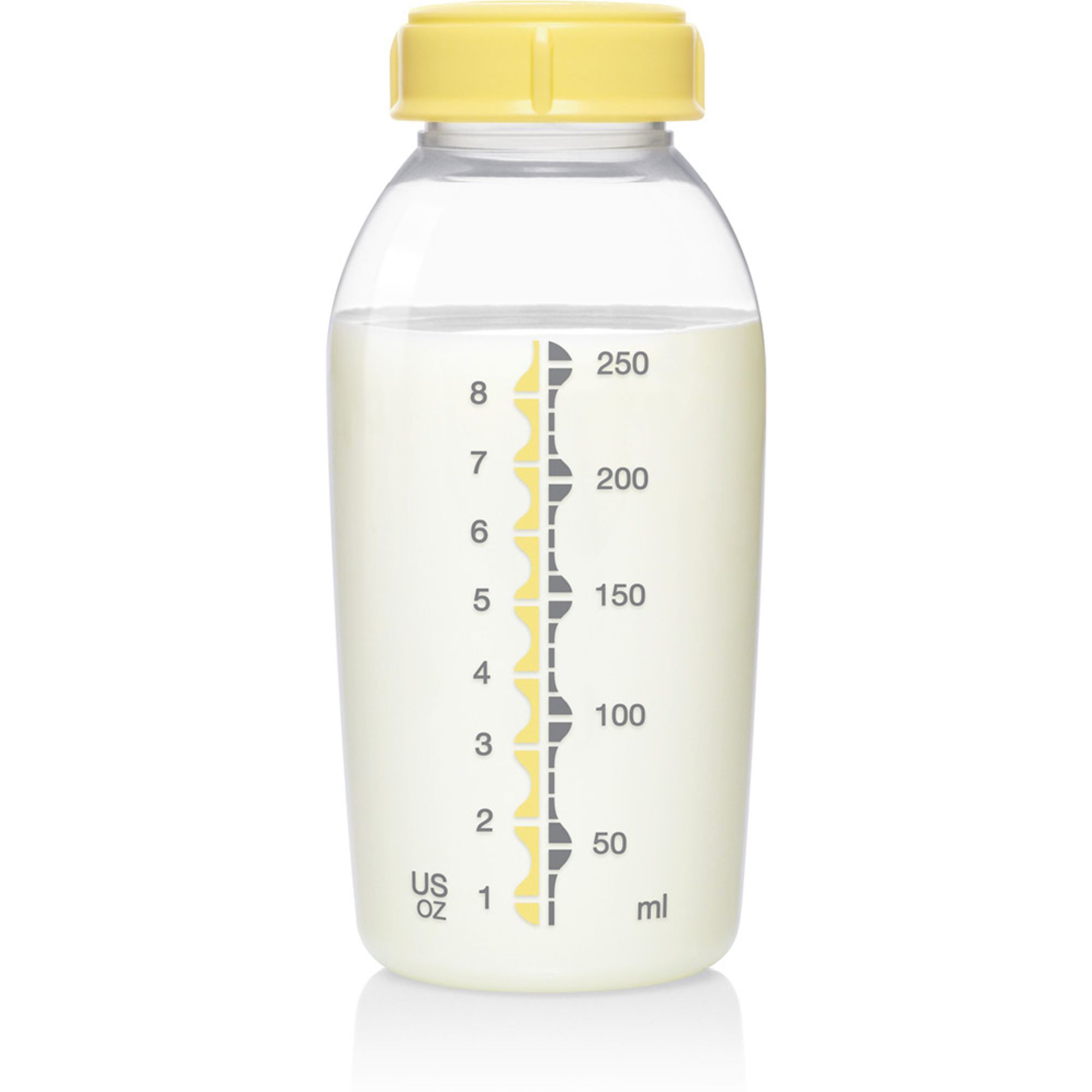 Le lot de 2 biberons Medela 250 ml est fabriqué en polypropylène sans bisphénol A, garantissant sécurité et durabilité. Ils se fixent directement sur les tire-laits Medela pour éviter toute manipulation inutile du lait. Chaque biberon est muni d’un couvercle à vis étanche et gradué jusqu’à 250 ml pour un dosage précis.