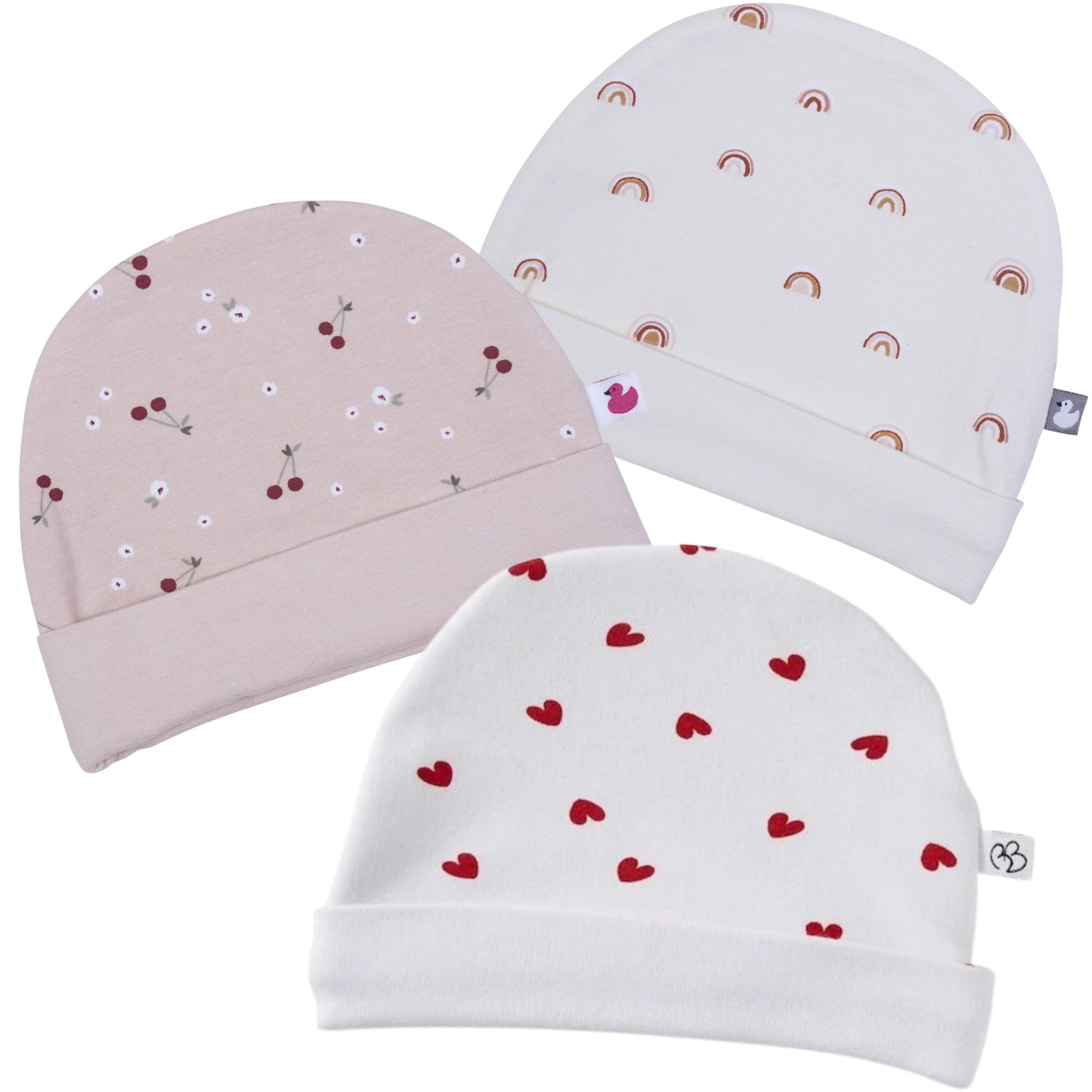 Adoptez le Bonnet doublé blanc imprimé cœur - 12 mois de la marque BB&Co. Ce joli bonnet tout doux en jersey sera idéal pour garder la petite tête de bébé au chaud l'hiver.