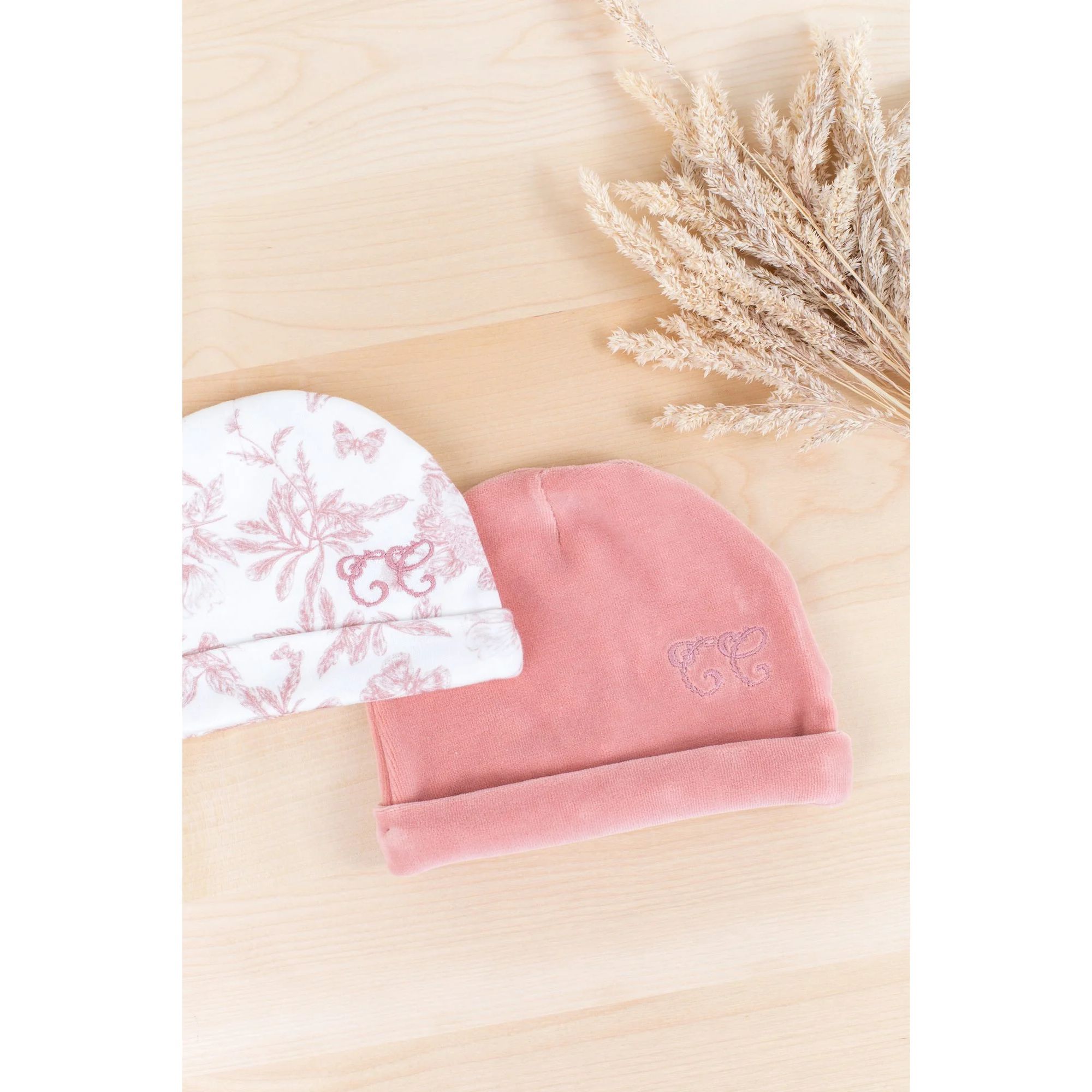 Apportez douceur et élégance aux tenues de bébé avec le bonnet réversible Toile de Jouy rose ! Conçu en velours 100 % coton, il offre deux styles raffinés pour un confort absolu.