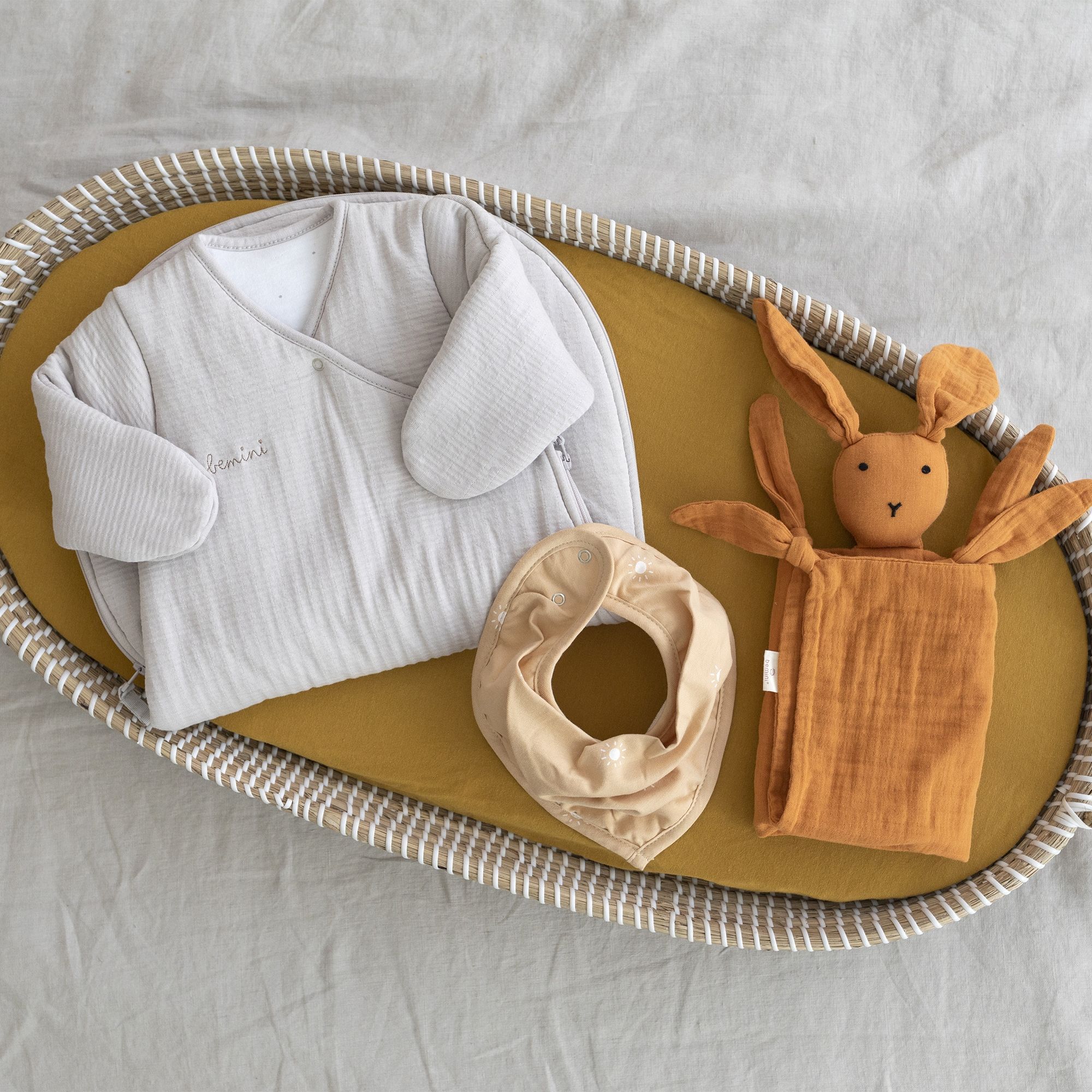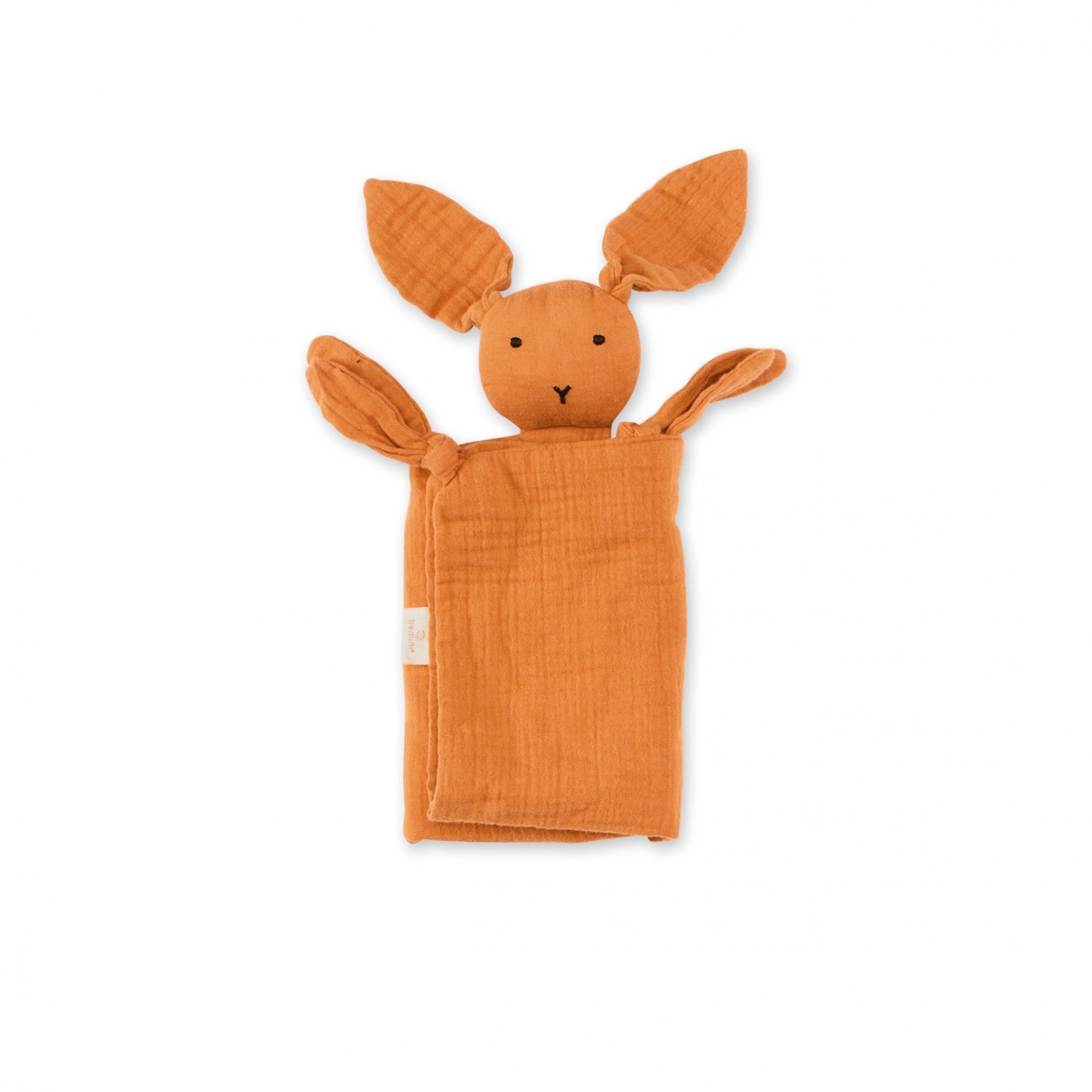 Choisissez ce joli doudou lapin de taille 40 x 40 cm de couleur Orange de la marque Bemini. L'accessoire indispensable à glisser dans votre liste de naissance pour rassurer et réconforter votre enfant. Ce doudou bébé a été fabriqué en mousseline de coton ce qui le rendra de plus en plus doux après chaque lavage.