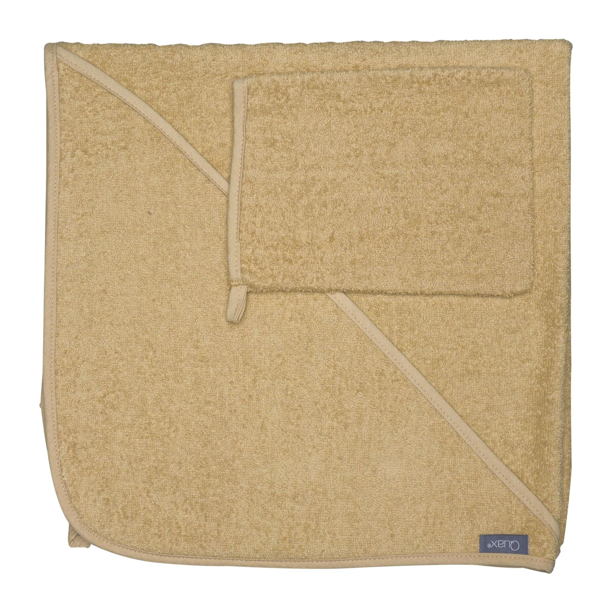 Adoptez la Cape de bain avec gant de toilette - Ginger de la marque Quax. Idéale pour envelopper votre bébé avec douceur après le bain. Fabriquée en 100% coton, cette serviette à capuche allie élégance et praticité pour accompagner tous vos moments de soin avec bébé.