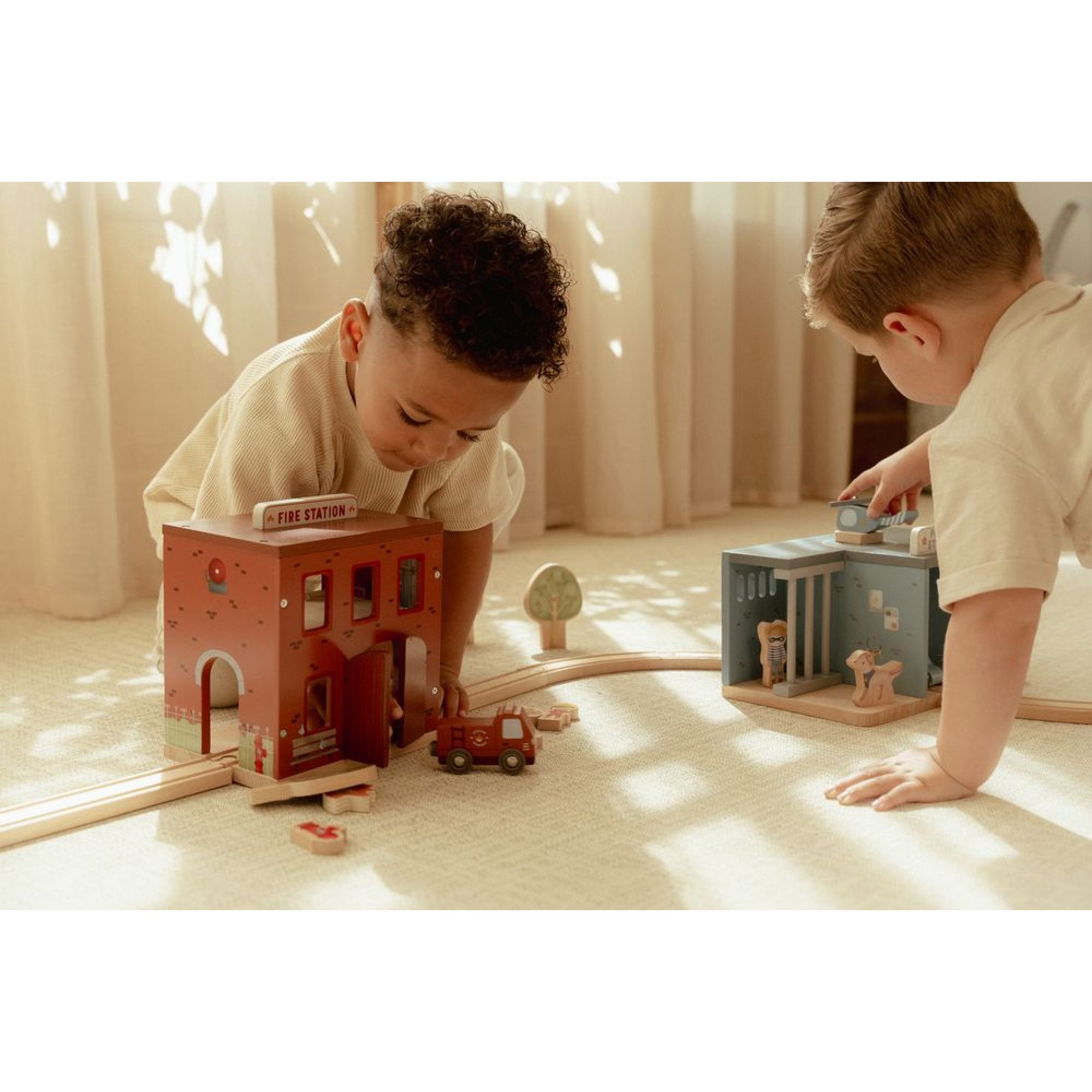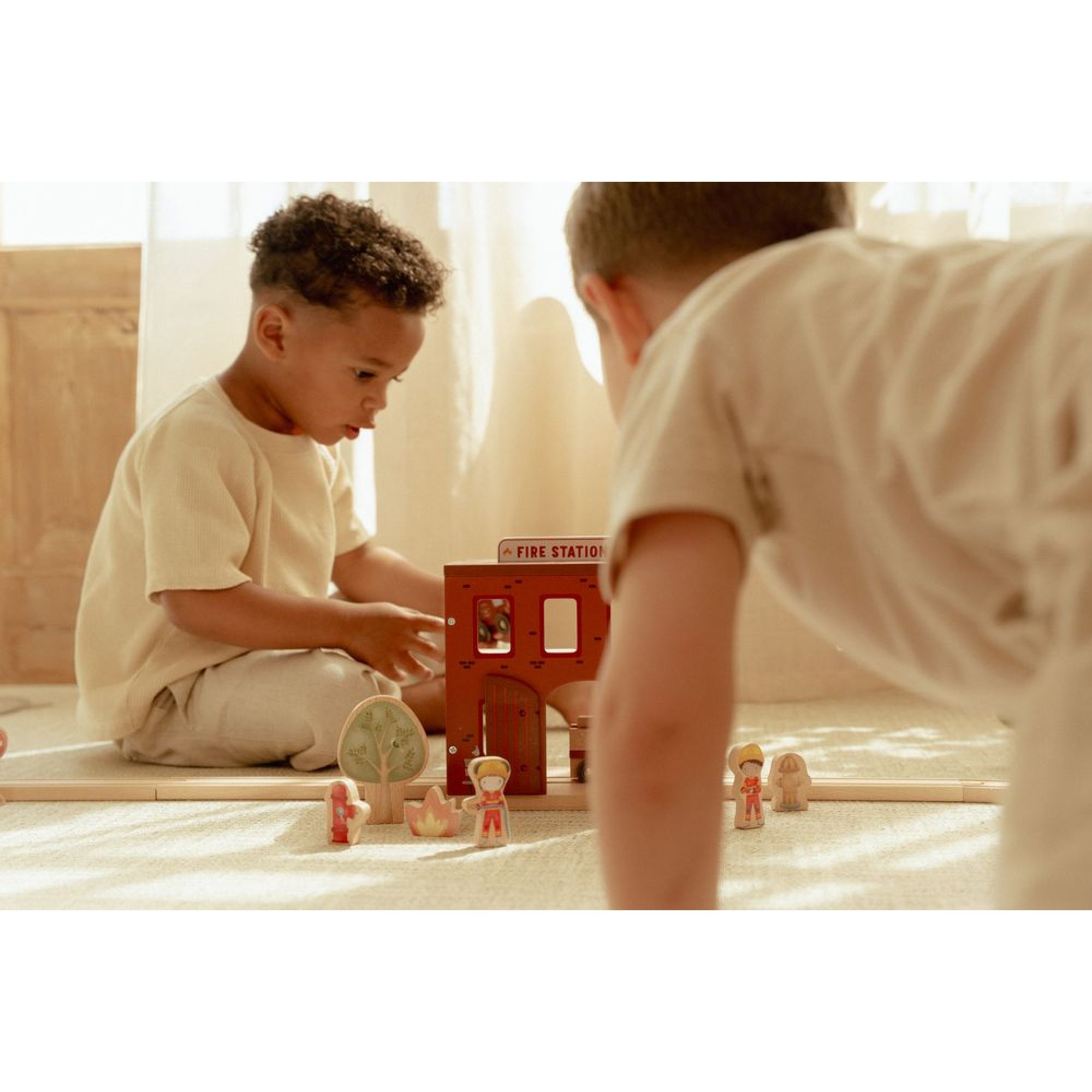 Découvrez la caserne de pompiers en bois FSC de la marque Little Dutch. C'est un jouet en bois classique et intemporel, conçu pour stimuler le jeu de rôle et la motricité des enfants. Il incarne parfaitement l'esthétique douce et colorée de la marque.