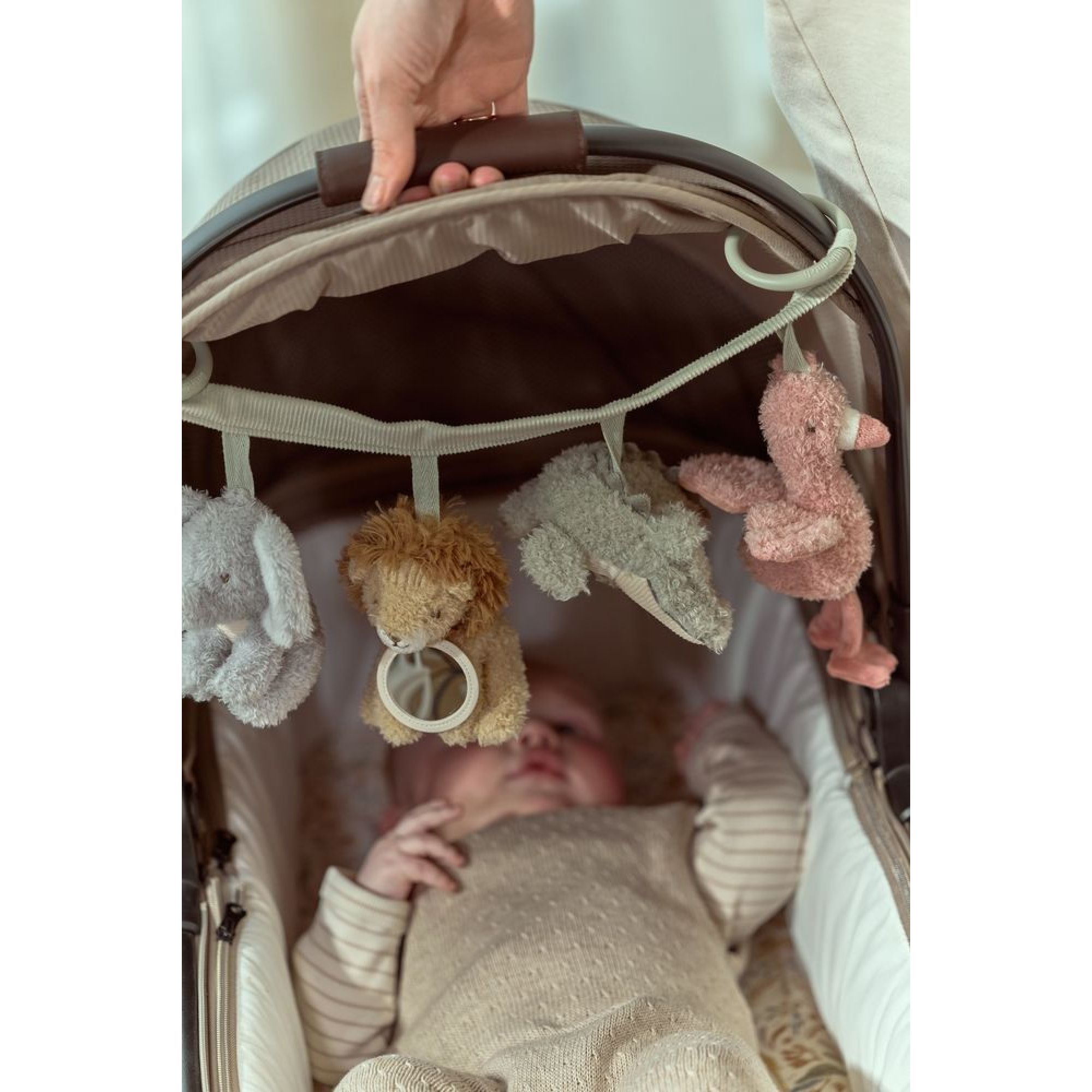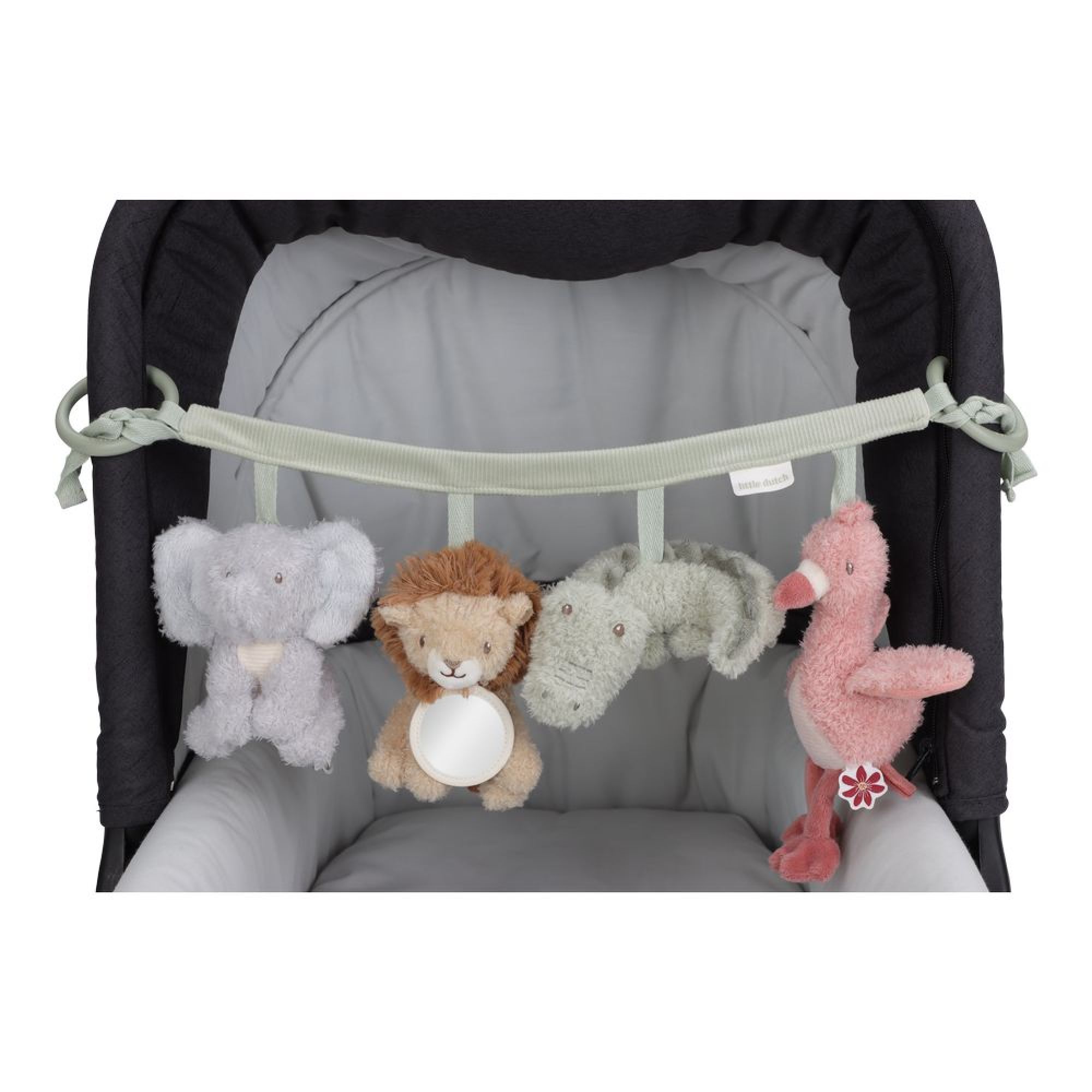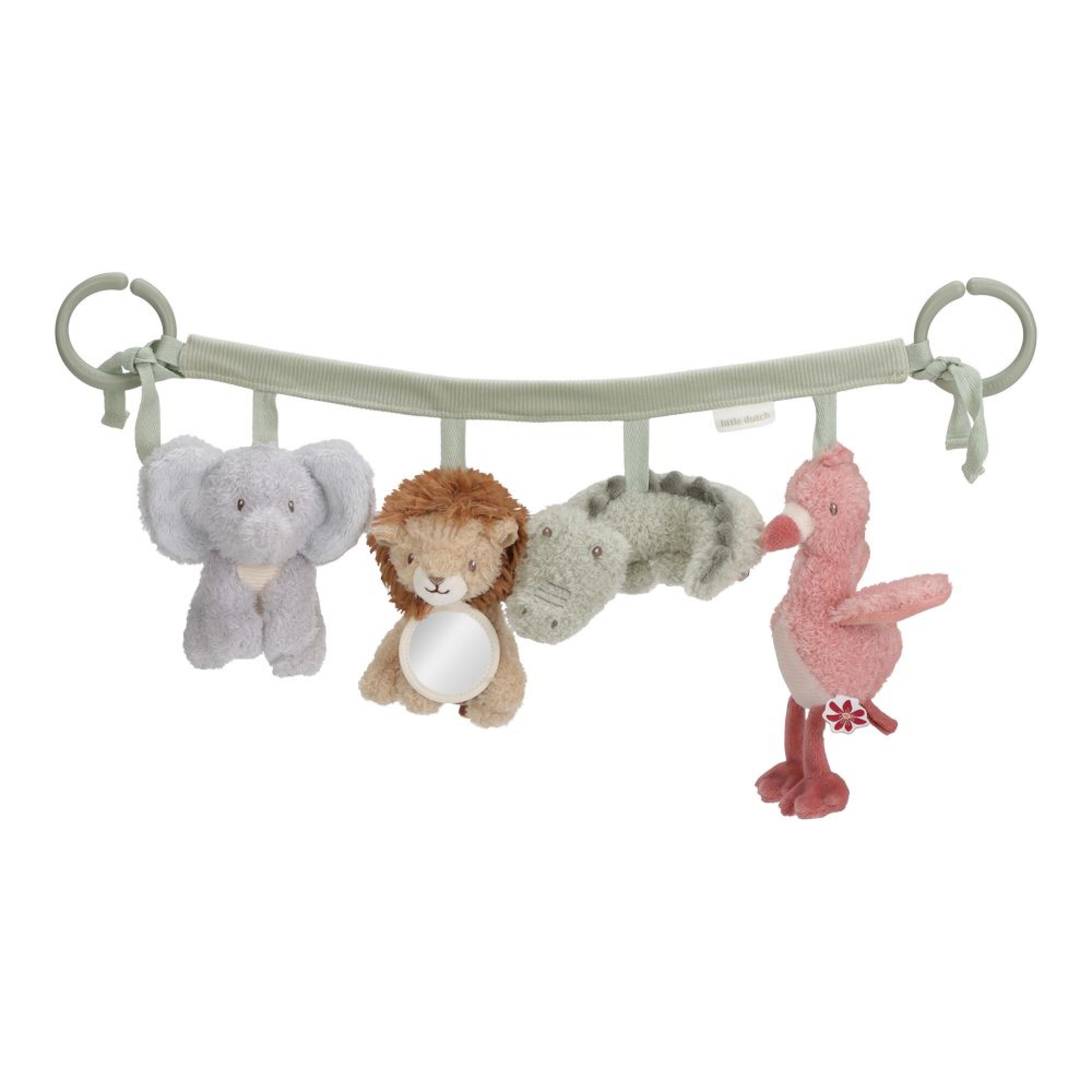 Accompagnez bébé dans ses sorties avec la chaîne d’activités pour poussette Little Dutch Safari Friends. Facile à fixer sur une poussette ou un cosy, elle propose plusieurs éléments suspendus à manipuler. Les textures, les formes et les couleurs stimulent les sens et encouragent la curiosité. Adaptée aux petites mains, elle favorise la coordination et la motricité fine. Un accessoire idéal pour divertir bébé lors des déplacements tout en contribuant à son éveil.