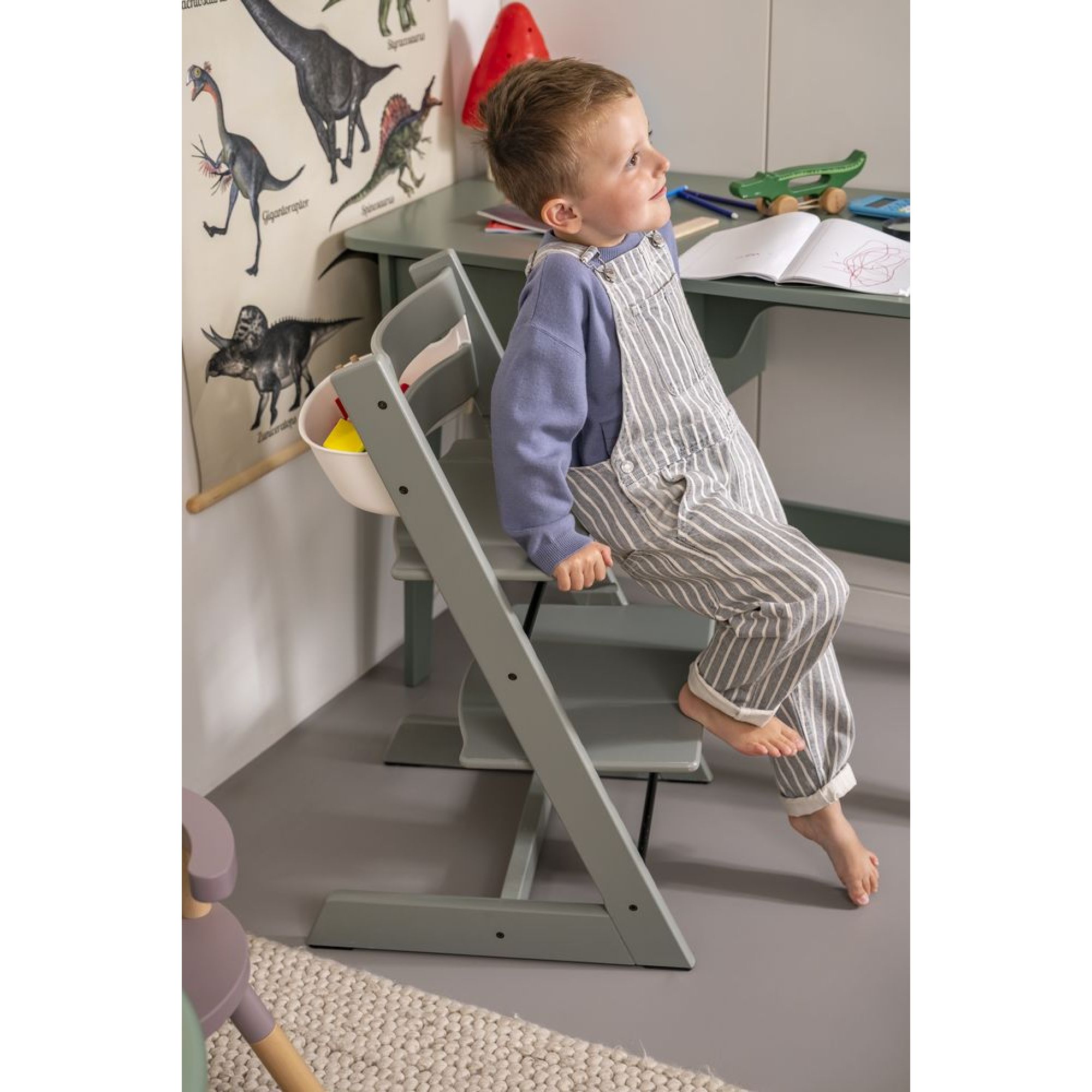 Choisissez la chaise haute évolutive de couleur Vert glacier de la collection Tripp Trapp de Stokke. Indémodable et évolutive, elle est indispensable pour les repas de votre bébé ! Cette chaise Tripp Trapp s'utilise dès la naissance à l'aide du newborn set (vendu séparément) et durant de nombreuses années puisqu'elle supporte jusqu'à 136 kg ! Avec son design scandinave et ses matériaux épurés, la Tripp Trapp s'adaptera dans tous les intérieurs. Installé dans sa chaise haute Stokke, votre enfant sera confortablement installé pour ses repas, à hauteur des autres personnes présentes autour de la table. Vous pouvez compléter cette chaise haute bébé avec un panier de rangement Tripp Trapp (vendu séparément) qui se fixe sur le dossier pour permettre à votre enfant d'avoir sa sucette et son doudou à portée de main par exemple. Personnalisez la Tripp Trapp avec le prénom de votre enfant, son surnom ou encore sa date de naissance pour la rendre unique !