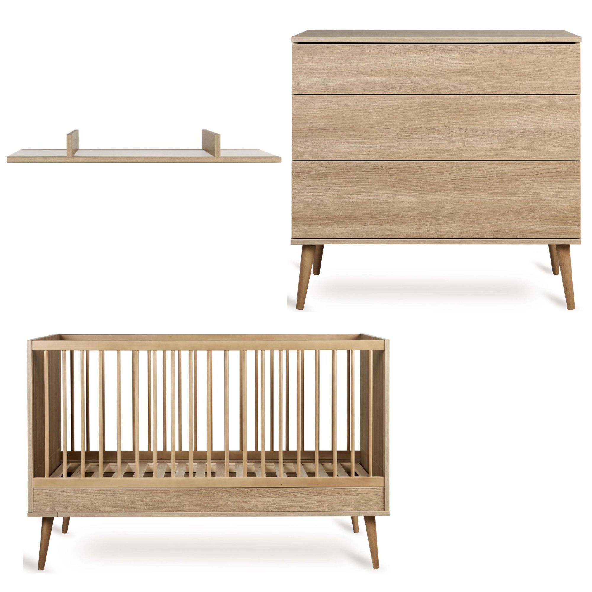Adoptez la Chambre duo lit bébé 70x140 cm + commode avec plan à langer Flow Honey Ash de la marque Quax. Un ensemble moderne et pratique pour accompagner la croissance de bébé avec élégance et confort.