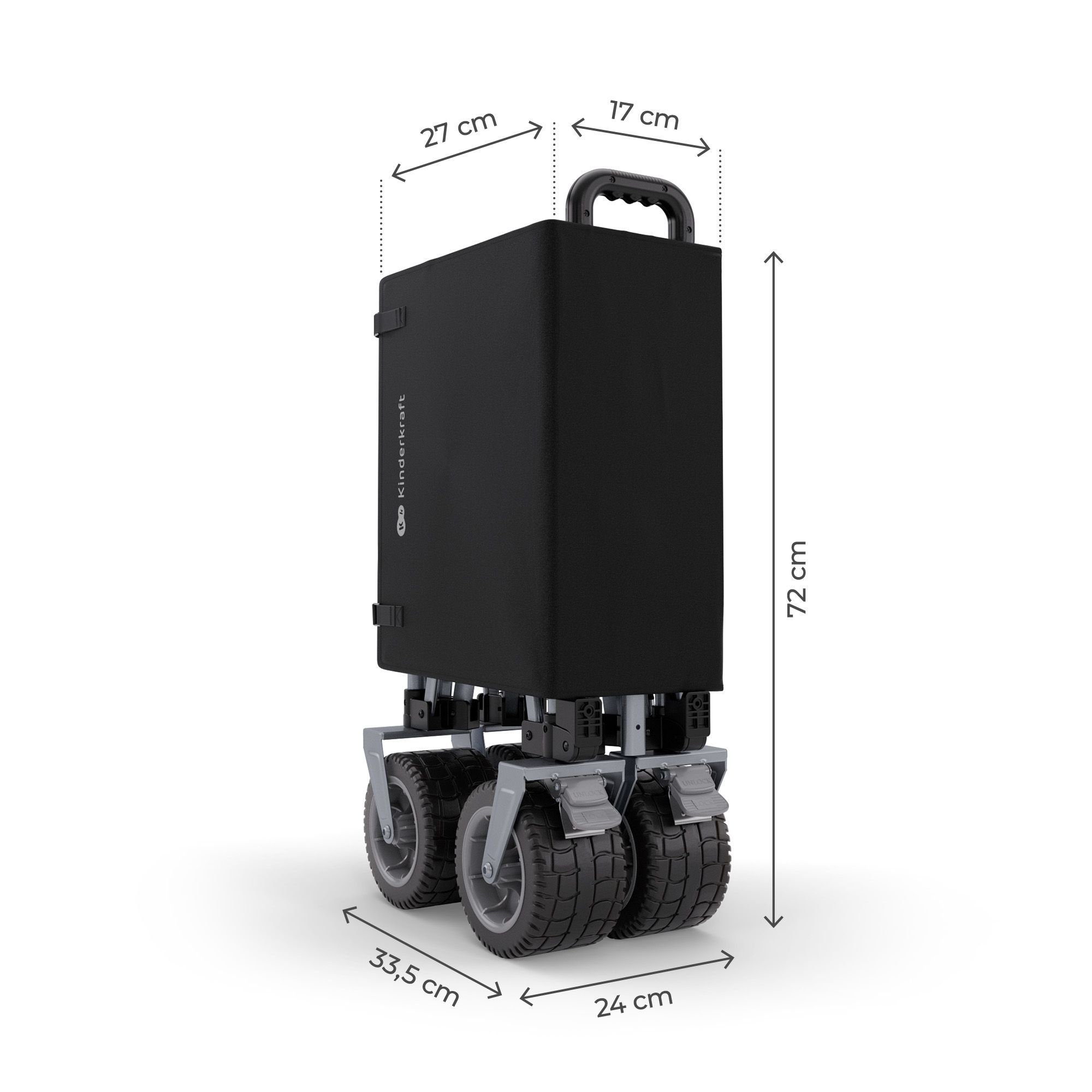 Découvrez ce chariot de transport pliable Rollster de la marque Kinderkraft. Ce chariot est un accessoire de transport universel et robuste, conçu pour faciliter la vie des familles lors des excursions, des courses ou des journées à la plage. Il ne s'agit pas d'une poussette, mais d'un chariot de fret/utilitaire pour transporter des objets lourds ou volumineux. Il est construit autour d'un cadre en acier solide, recouvert d'un tissu Oxford 600Drésistant à l'usure, aux déchirures et facile à nettoyer. Le Rollster se distingue par son système de pliage simple et rapide (souvent comparé à celui d'un lit de voyage). Il se plie en quelques secondes, sans outil, pour atteindre des dimensions très compactes. Des freins sur les roues assurent la stabilité à l'arrêt, même sur terrains inclinés.