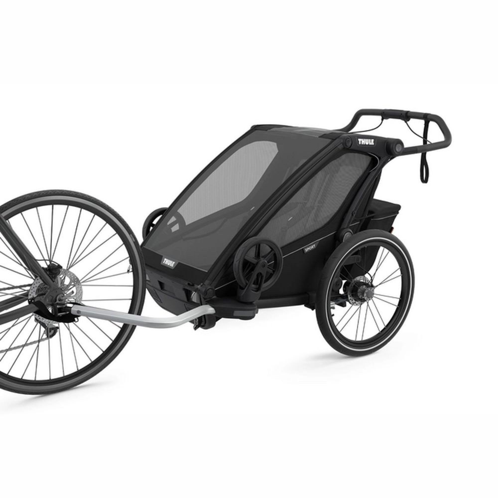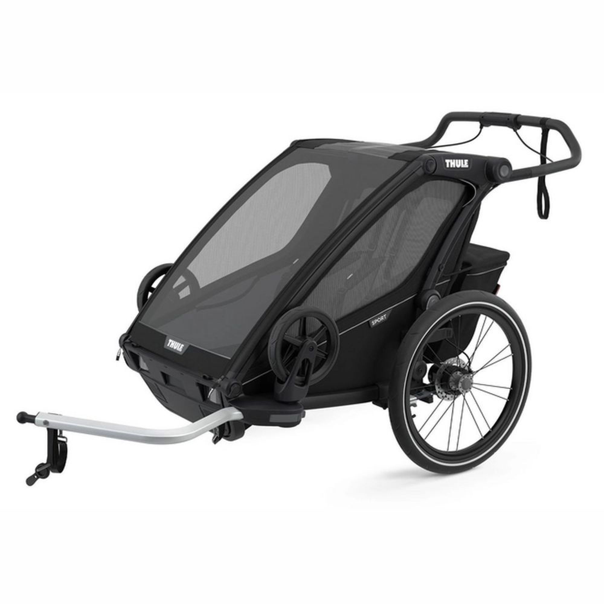 Tentez la remorque pour vélo Chariot Sport biplace 2 black on black de la marque Thule. Ce produit est spécialement conçu pour les parents sportifs. Vos enfants seront confortablement installés dans le chariot. Vous pourrez utiliser ce produit de 4 manières différentes : pour faire du vélo, pour faire du jogging, en poussette et pour faire du ski. Le système pour utiliser ce produit en poussette ou remorque de vélo sont inclus avec le produit. Le kit jogging est vendu sur notre site.