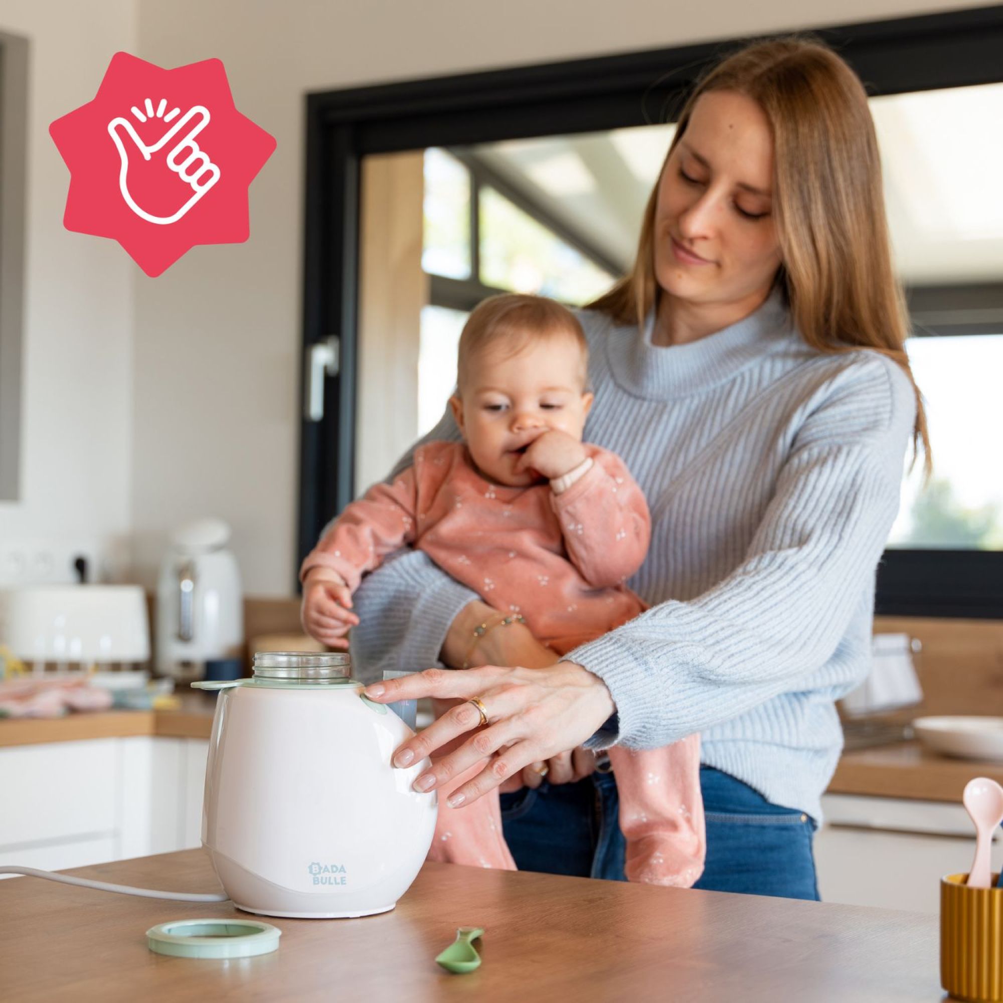 Préparez les repas de bébé rapidement et en toute simplicité avec le chauffe-biberon Easy+ Pastel de la marque Badabulle. Fonctionnant aussi bien à la maison que dans la voiture grâce à son adaptateur allume-cigare, il chauffe un biberon de 60 ml en moins de 90 secondes. Sa dosette double-face permet de doser précisément l’eau selon la température du liquide pour un résultat optimal. Compatible avec tous les biberons et petits pots, il est fourni avec un panier et un anneau d’adaptation pour une utilisation universelle. Son bouton unique et son arrêt automatique rendent chaque utilisation simple et sûre, et son utilisation nomade en fait un indispensable pour les familles en déplacement.