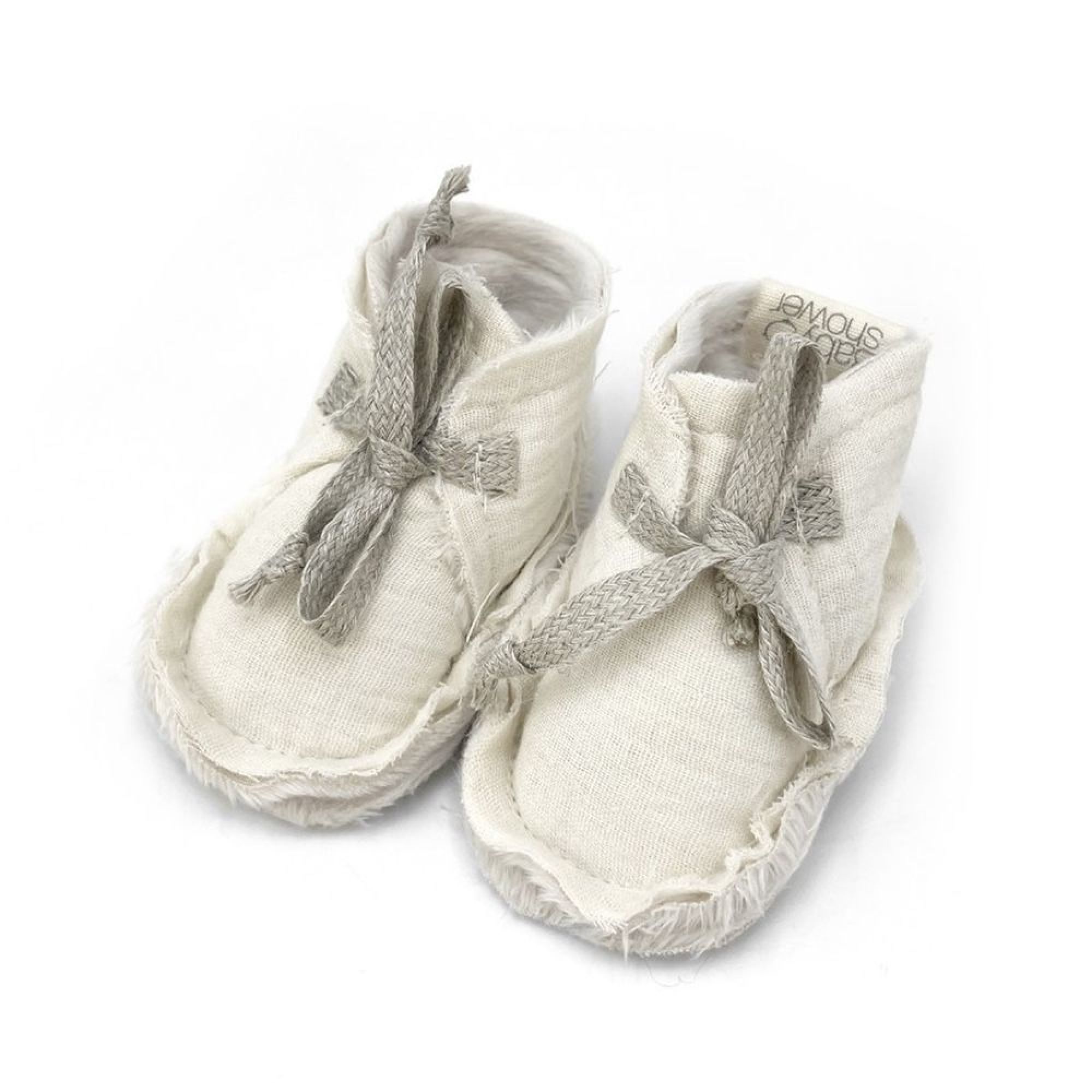 Choisissez ces jolis chaussons bébé polaires de la marque BabyShower. Ils ont été spécialement conçus pour être utilisables de 1 à 3 mois environ. Ces chaussons polaire maintiendront les petits pieds de votre bébé bien au chaud. Vous allez adorer le petit noeud en lin noué sur le dessus de ces chaussons BabyShower.