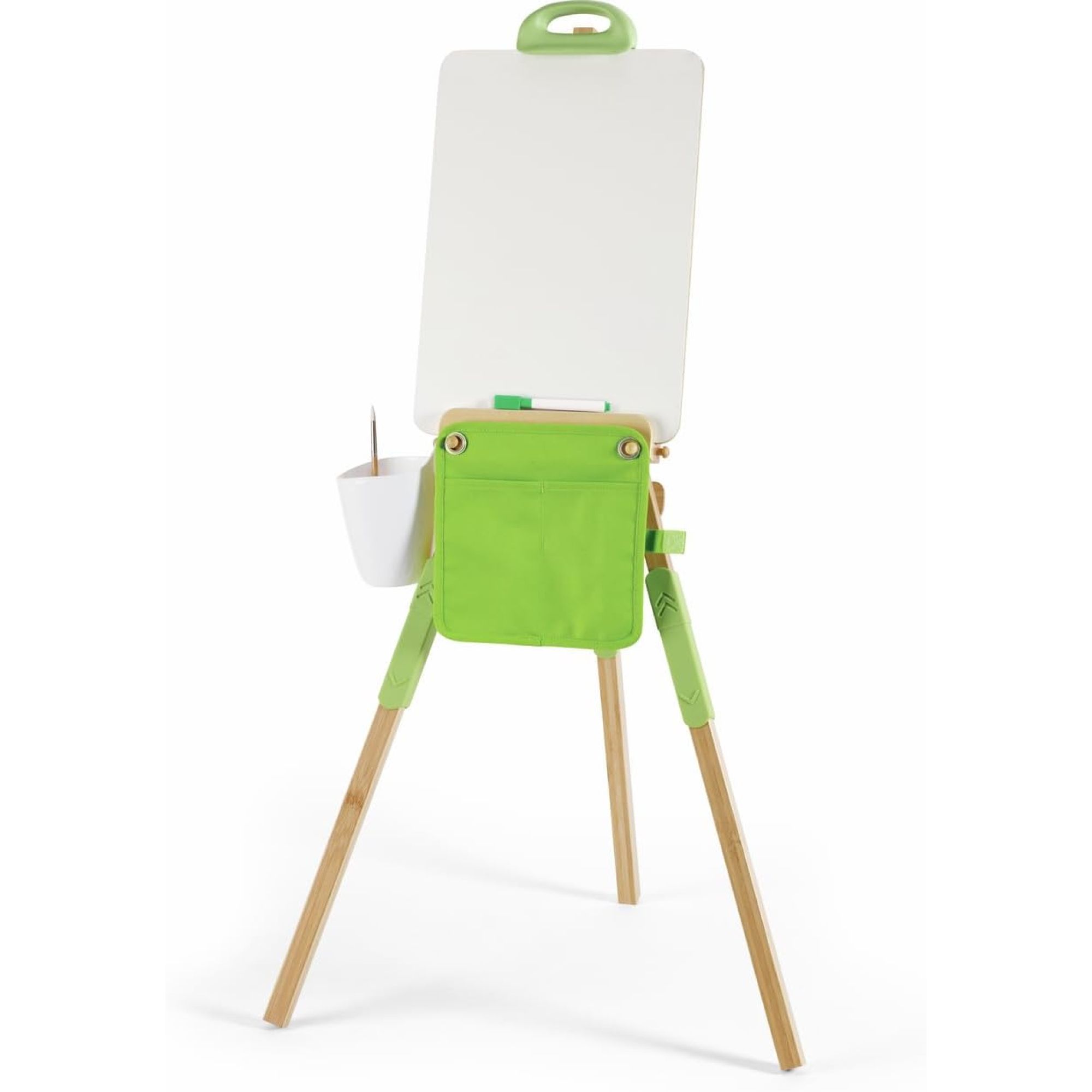 Offrez de nouvelles aventures créatives à votre enfant avec notre chevalet portable d'Hape. Ce chevalet enfant portable en bambou est l’allié idéal des jeunes artistes dès 4 ans. Conçu à partir de bambou durable et écologique, ce chevalet favorise la créativité, la concentration et la motricité fine à travers la peinture et le dessin. Complet et facile à utiliser, il comprend une toile, une planche à dessin en bois, un plateau réglable, un étui à pinceaux pliable, une tasse, deux pinces de maintien et trois connecteurs de pied pour assurer la stabilité. Réglable en hauteur grâce à sa poignée ergonomique, il s’adapte à la taille et à la posture de chaque enfant, pour un confort optimal.