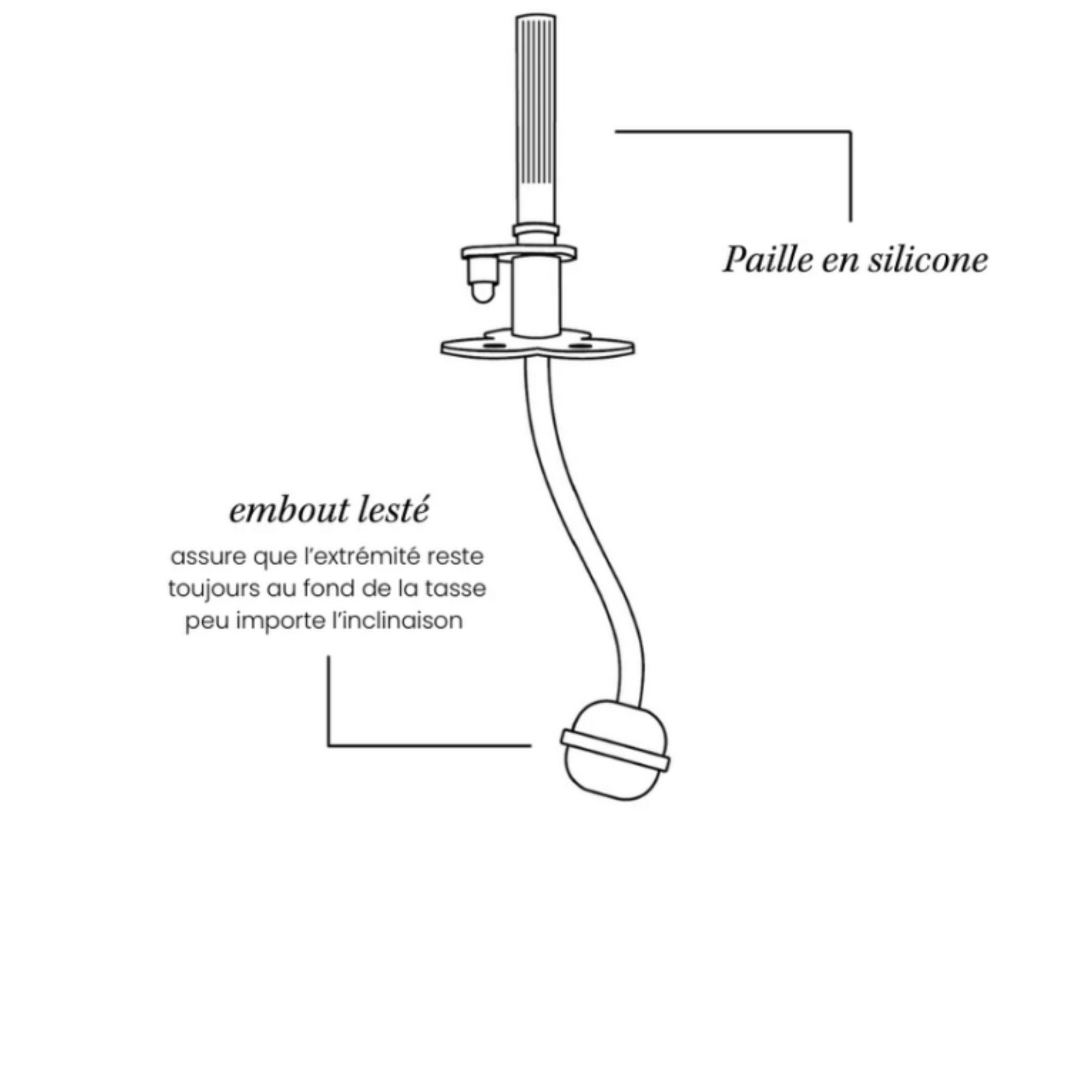Système : Paille lestée souple + couvercle anti-fuite rabattable