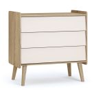La commode Vintage Fresh a été conçue pour offrir un vaste espace de rangement destiné aux essentiels de votre enfant. Ses tiroirs dotés de rails à fermeture silencieuse apportent un confort d’utilisation apprécié au quotidien. Son design chaleureux en panneaux chêne et beige rayé s’accorde parfaitement au style rétro de la collection. Grâce à ses pieds obliques, la commode reste stable tout en facilitant le nettoyage de la pièce.